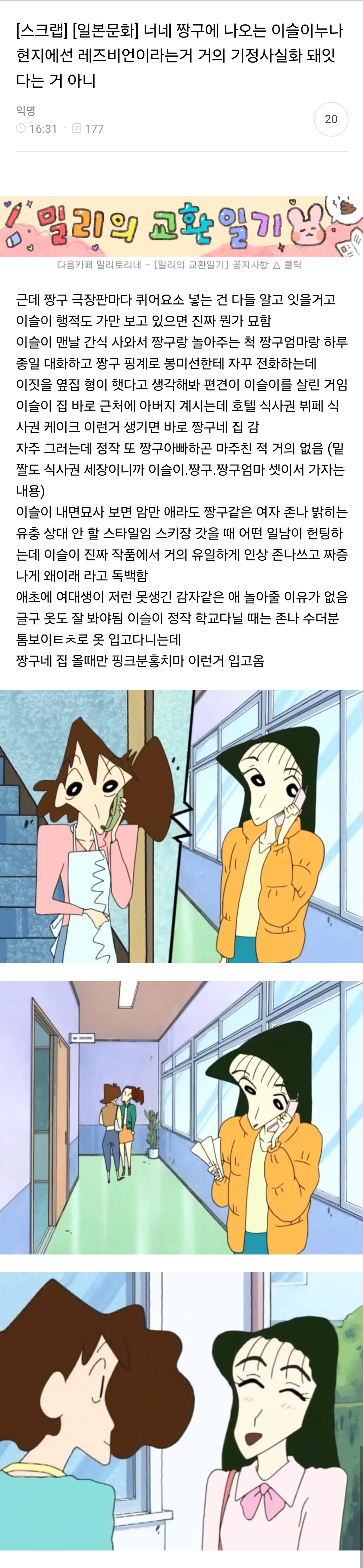 [스크랩] [흥미돋][일본문화] 너네 짱구에 나오는 이슬이누나 현지에선 레즈비언이라는거 거의 기정사실화 돼잇다는 거 아니