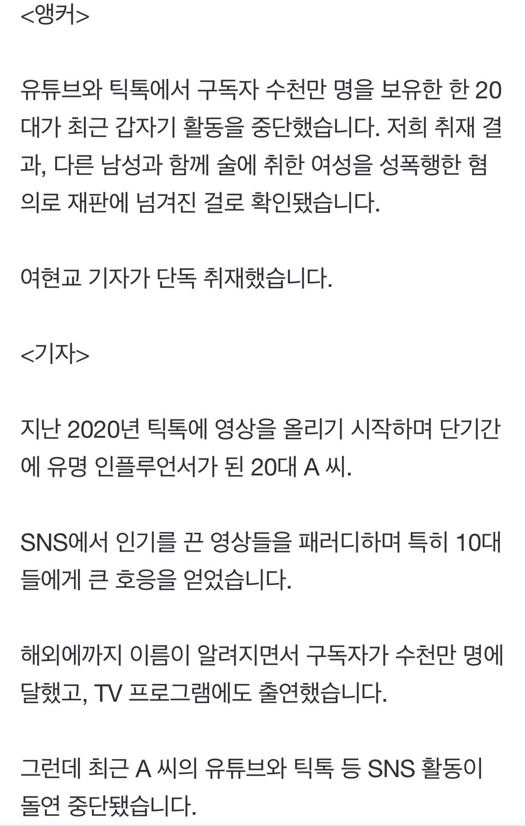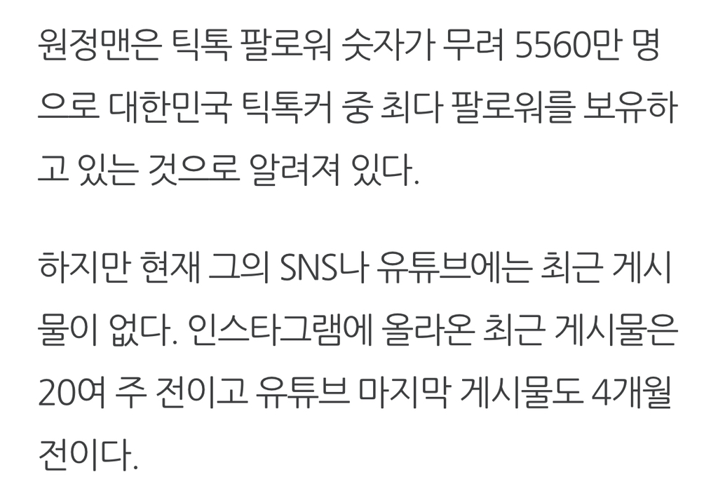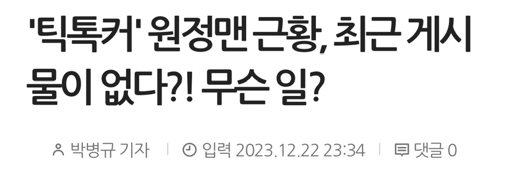 [흥미돋]사라진 20대男 유명 틱톡커의 소름돋는 근황(ft.한국 틱톡커 팔로워 순위 1위) 작성자바닐라쿠|작성시간23.12.23|조회수12,167 목록 댓글 20 글자크기 작게가 글자크기 크게가 출처 : 여성시대 바닐라쿠이에 영상 댓글에는 "군대간 것이 아니냐""사고 친 것 같다" "원정맨 언제 돌아오냐" 등의반응이 이어지고 있다고 함...어 ... ?어줍잖은 한국남자는 가만히 보고 있으면항상 스스로 자멸한다지요 ~ 🎉범죄자는 수익창출 못하게 해라~대종상 영화제 갑분싸로 유명한원정맨 영상 다음검색 현재 게시글 추가 기능 열기 북마크 공유하기 신고 센터로 신고 댓글 댓글 20 댓글쓰기 답글쓰기 댓글 리스트 작성자달블실자 | 작성시간 23.12.23 왜대박;;; 개소름 작성자테디베어팀 | 작성시간 23.12.23 계정 내려 ㅡㅡ 돈 벌려고 살려두고 깜빵갔다는 댓 봤는데틱톡 측에서 삭제해줬으면 ㅡㅡ 작성자률뢀렬륄룔 | 작성시간 23.12.23 ㅁㅊ 작성자귷까먹기 | 작성시간 23.12.23 역시 작성자한남 멈춰 | 작성시간 23.12.24 대단타 댓글 전체보기