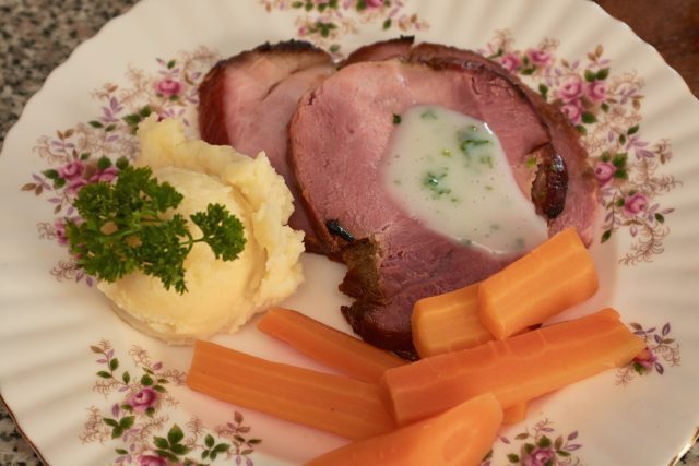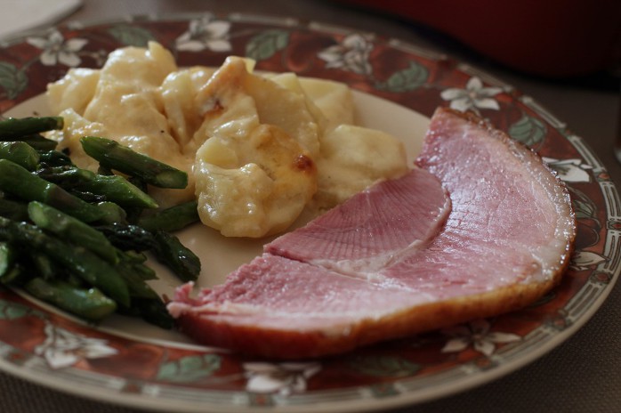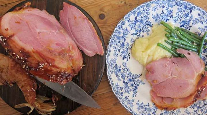 추수감사절, 크리스마스에 덩어리로 된 꿀 햄을 먹음