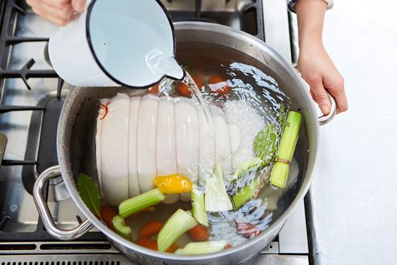 돼지고기를 실로 묶고 채소육수에 익히고 직접 오븐에 구워가면서 만들기도 하지만