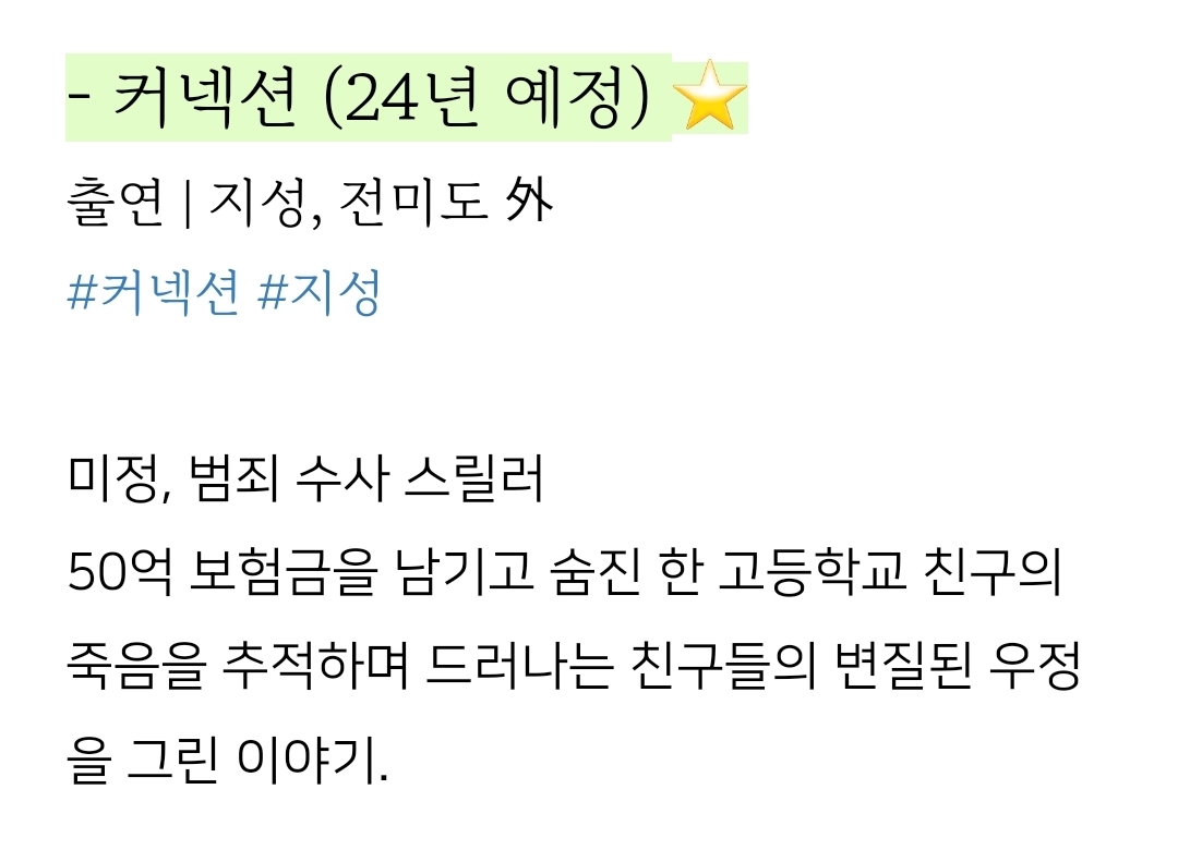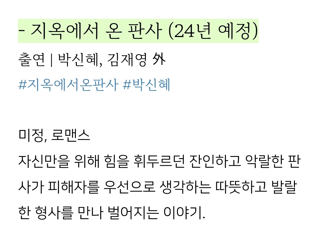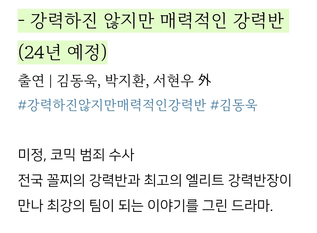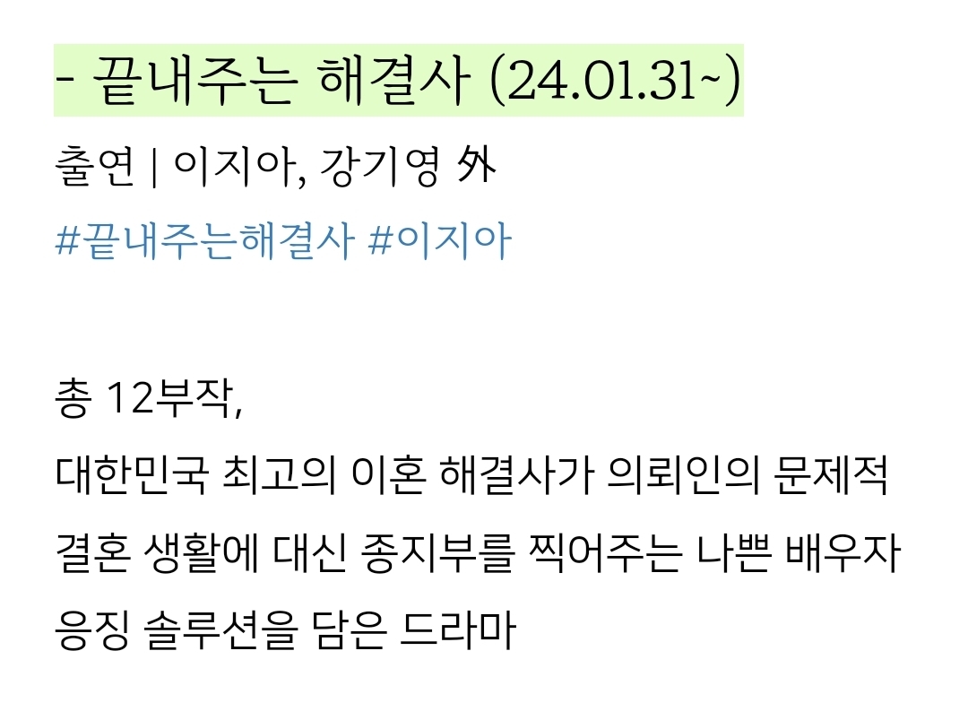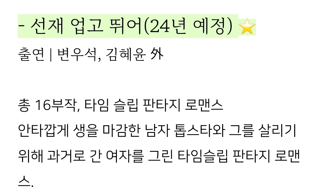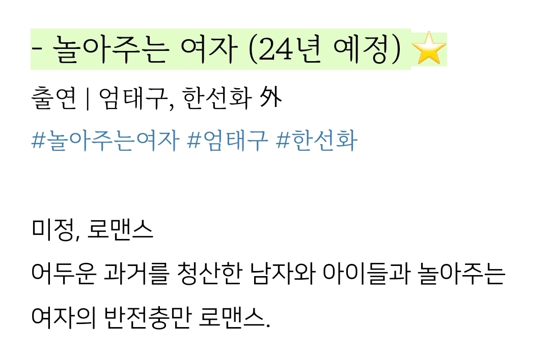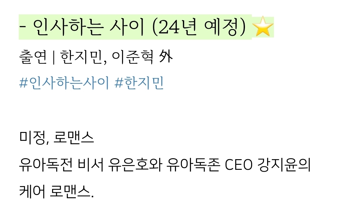 [흥미돋]2024 방영예정 한국 드라마 라인업(mbc/sbs/kbs/tvn/ jtbc) 작성자고슴도치의스컬|작성시간23.12.29|조회수1,902 목록 댓글 1 글자크기 작게가 글자크기 크게가 출처 : https://naver.me/xq52C0L7여성시대 고슴도치의 스컬MBCSBSKBSJTBCtvN 다음검색 현재 게시글 추가 기능 열기 북마크 공유하기 신고 센터로 신고 댓글 댓글 1 댓글쓰기 답글쓰기 댓글 리스트 작성자모조리 먹고싶다 | 작성시간 23.12.29 오 김하늘 장승조 연우진 재밌으려나 댓글 전체보기