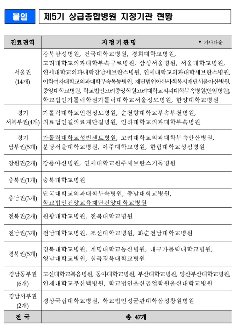 [스크랩] [흥미돋]우리지역 상급종합병원🏥은 어디일까? 새로 지정된 5기(24-26년) 상급종합병원 목록