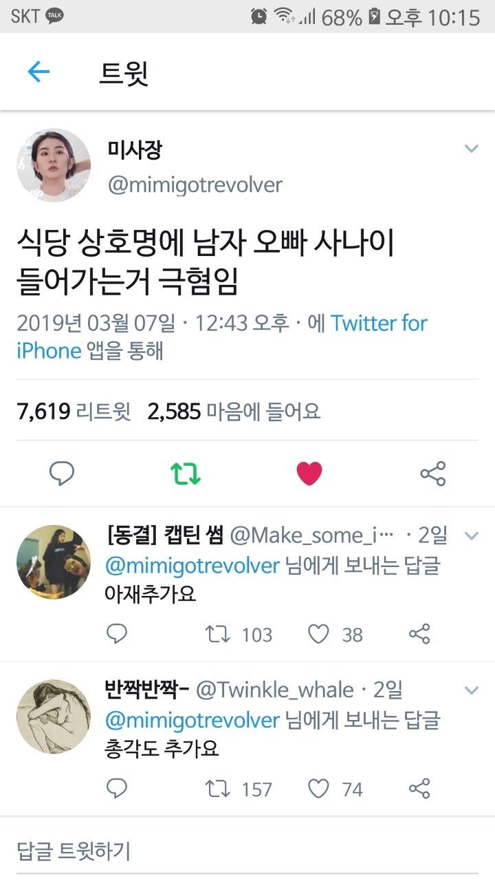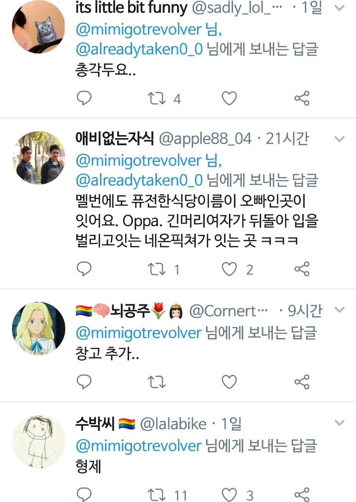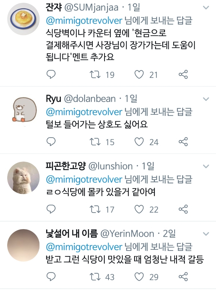 [스크랩] [흥미돋]왠지 입맛 떨어지는 식당 이름 공감 도전!! 작성자WInter|작성시간23.12.29|조회수11,900 목록 댓글 41 글자크기 작게가 글자크기 크게가 남자총각오빠사나이아저씨 아재형제청년털보벌써 개쉰내난다.. 다음검색 스크랩 원문 : 쭉빵카페 현재 게시글 추가 기능 열기 북마크 공유하기 신고 센터로 신고 댓글 댓글 41 댓글쓰기 답글쓰기 댓글 리스트 작성자먹고 자고 구르고 | 작성시간 23.12.29 털보 진짜 그쪽으로 숨도 쉬기 싫어 작성자나 자신대로 킵고잉 인정 욕구 따위 | 작성시간 23.12.29 으웨에에엑 작성자Life is 아름다운 갤럭시 | 작성시간 23.12.30 삼촌 오빠 털보 총각 작성자상큼체리 | 작성시간 23.12.30 동네에 털보순대국집있는데 ㅋㅋ 작성자카마솝 | 작성시간 23.12.30 울동네에 총각비빔밥인가 있는데 이름 짱나서 안감..... 댓글 전체보기
