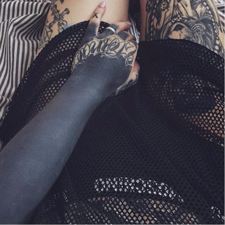 팔 전체를 까만 잉크로 덮는걸 말하고