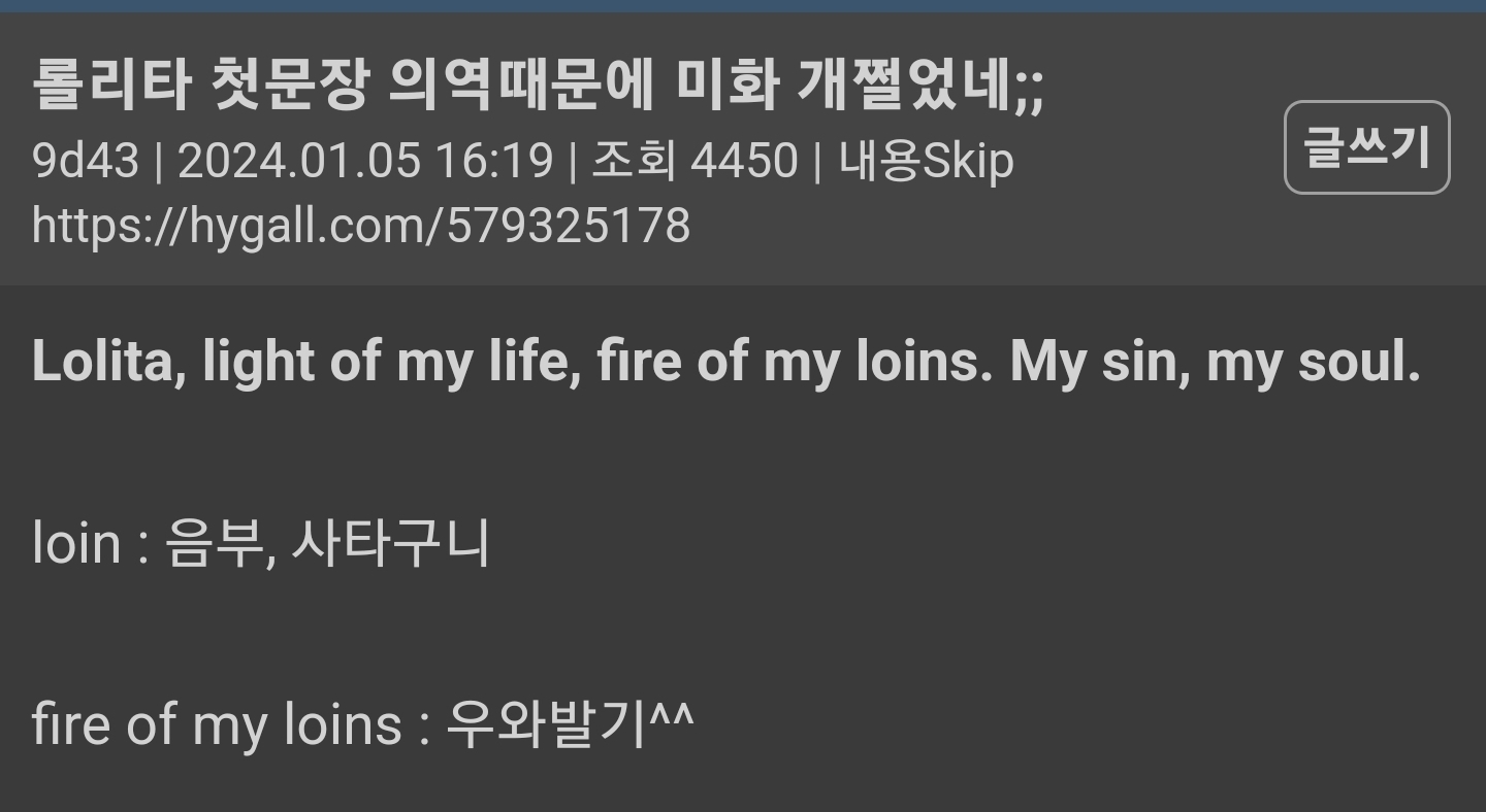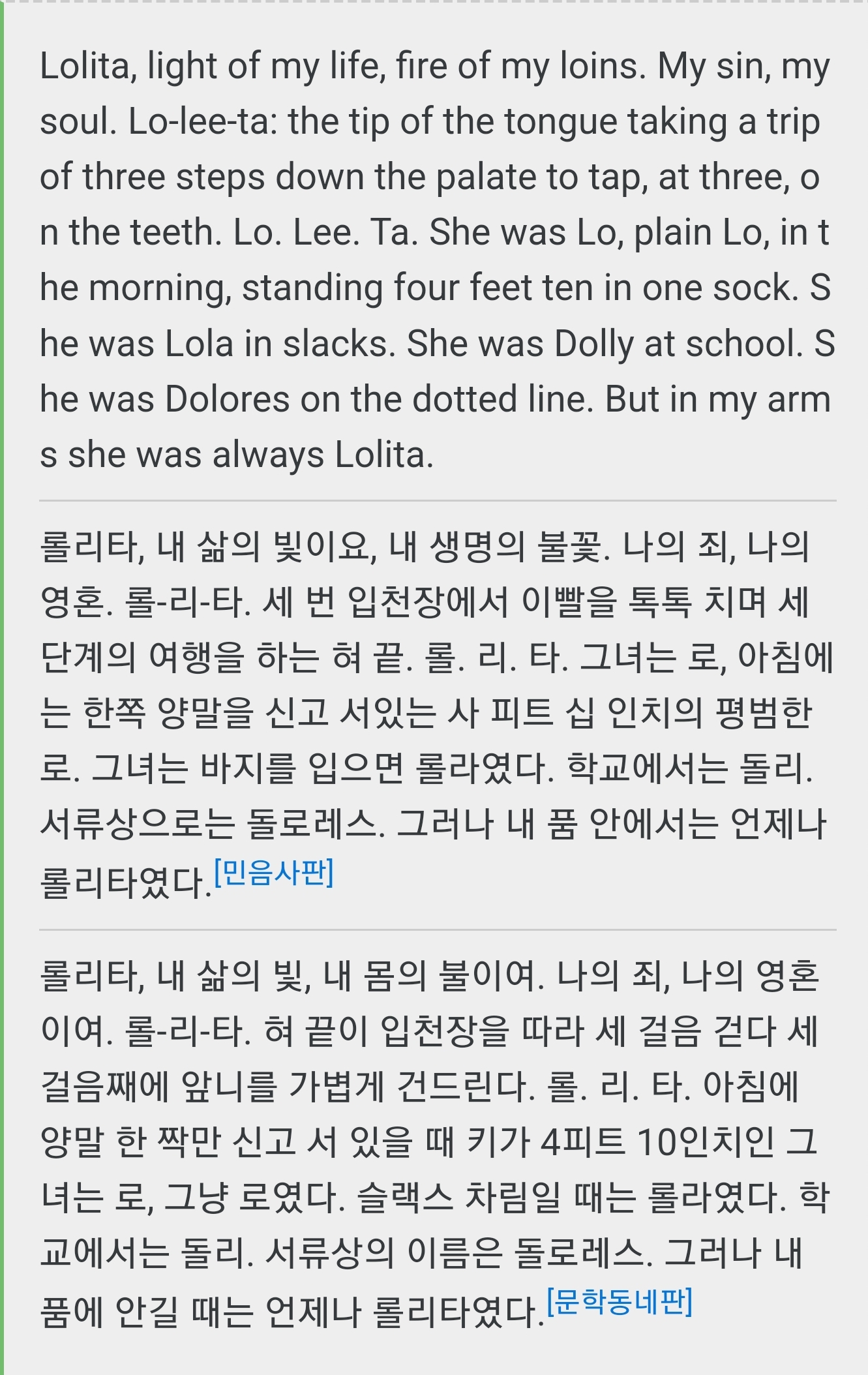 작성자드래곤에이지솔라스 작성시간 24.01.06 소아성애를 표현할순없으니 잘번역한것같아ㅋㅋㅋㅋㅠㅠ