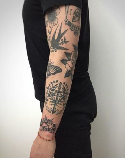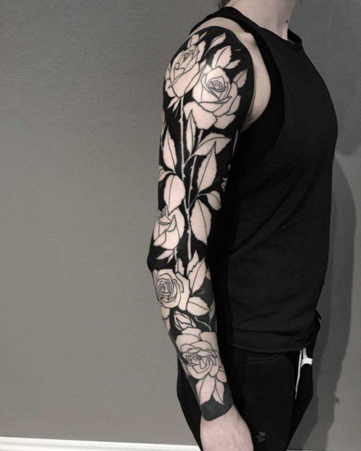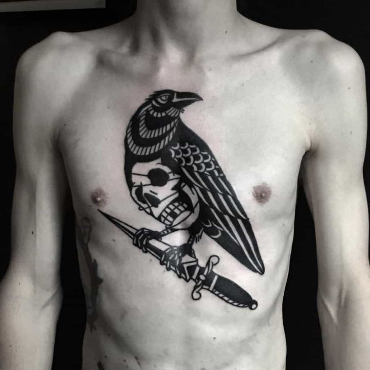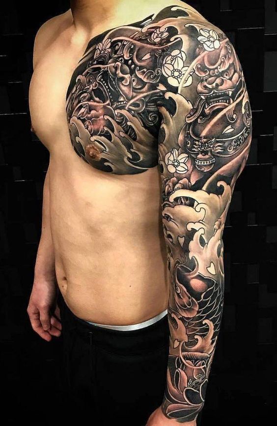 큰 설명 없이 검은색을 많이 써서 그린 문신.