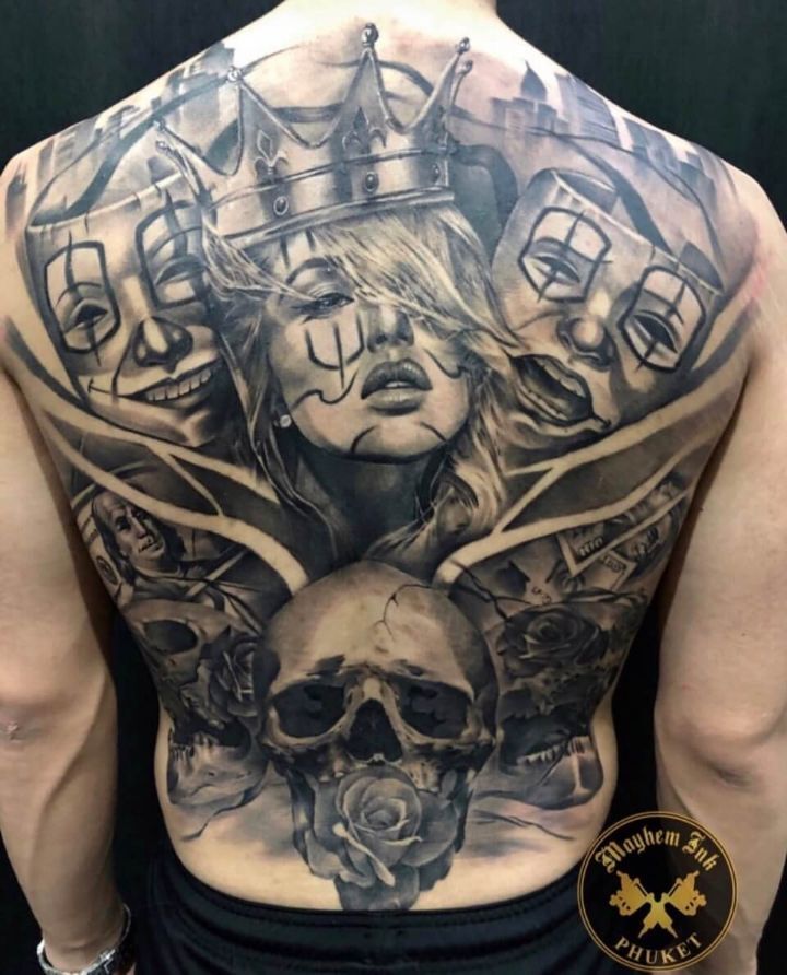 여자얼굴, 피에로, 가면, 십자가, 총 등을 새기는 장르로 주로 라틴, 멕시코 계열 이민자들이 많이 하는 문신.