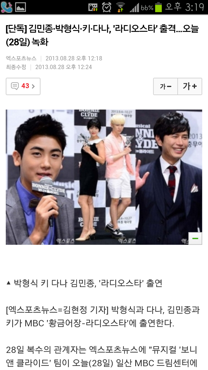 [여시뉴스데스크][단독] 김민종·박형식·키·다나, '라디오스타' 출격…오늘(28일) 녹화 작성자바람에휘날리는태민이코털이아름다워|작성시간13.08.28|조회수5,771 목록 댓글 65 글자크기 작게가 글자크기 크게가 출처- http://m.news.naver.com/read.nhn?mode=LS2D&sid1=106&sid2=224&oid=311&aid=0000253660아니 극성형식맘 광희는 어디 ㅠㅠㅠ이 조합이 뭘까....⊙▲⊙(+같이 뮤지컬하는거래!! 몰랏숨...ㅠㅠ다나랑 키랑 뮤지컬 하는건 알앗는데 4명 같이 하는줄 모르고 무슨 조합이냐는 소릴 햇군요...기사에도 써잇엇는데...나는 바보야...멍충지송...) 다음검색 현재 게시글 추가 기능 열기 북마크 공유하기 신고 센터로 신고 댓글 댓글 65 댓글쓰기 답글쓰기 댓글 리스트 작성자Kai (김종인) | 작성시간 13.08.28 형시가 ㅠㅠㅠㅠㅠㅠㅠㅠㅠㅠㅠㅠㅠㅠㅠㅠㅠㅠㅠㅠㅠㅠㅠ 작성자do경수 | 작성시간 13.08.28 윤이어빠!!!!!!!!!!!!! 작성자징 큥징 큥 | 작성시간 13.08.28 헐 기범아 작성자효시니 | 작성시간 13.08.28 키 !!! 작성자아라가키 유이 | 작성시간 13.08.29 기범아!!!!!!!!!!!!!!!!!!!!!!!!!! 닥본사해야겠다ㅠㅠㅠㅠㅠㅠㅠㅠㅠㅠㅠㅠㅠㅠㅠㅠㅠ 댓글 전체보기