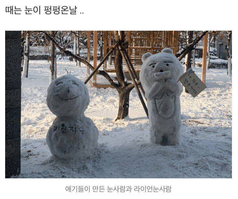 작성자달나라로여행중 작성시간 24.01.11 따숩다ㅠㅠㅠㅠㅠ 눈사람 부순새끼 안 봐도 한남이겠지 지옥가길