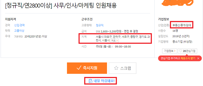 이유는 모르겠으나 근무지가 한곳이 아니라 여러곳이고, 공고를 하루단위로 갱신하는 경우가 많아