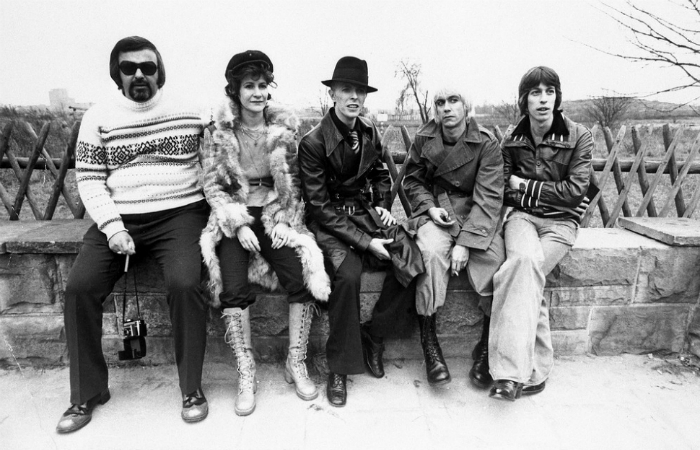 보위+이기 팝 일행들: (왼쪽부터) 보위의 절친 운전기사 토니 마스치아, 비서 코코 슈왑, 보위, 이기 팝, 팻 기븐스
