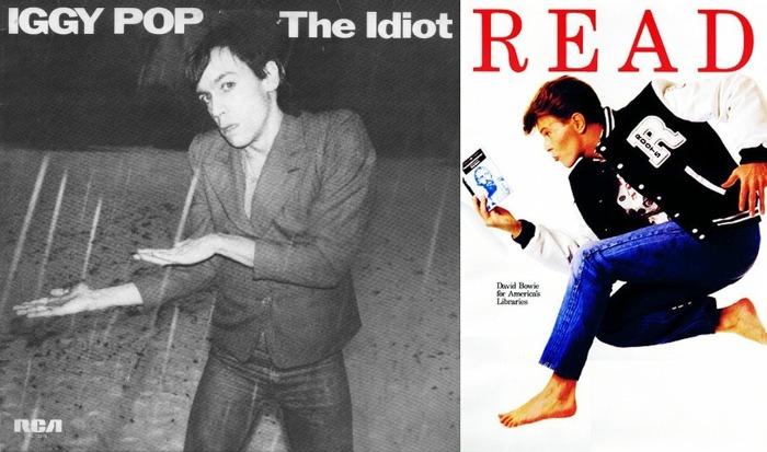 아래 왼쪽은 이기 팝의 <The Idiot> 앨범 커버, 오른쪽은 1985년 미국도서관협회에서 진행한 독서 캠페인에