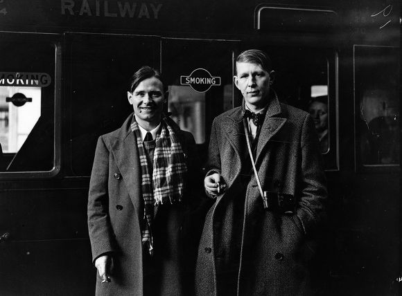 ↑ 열차 앞에 선 이셔우드와 오든. 데이빗 보위는 1976년에 자기 공연에 이셔우드를 실제로 초대하기도 해.