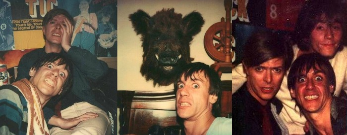 ↑ 1986년 같이 공연하고 있는 보위와 이기 팝. 위 사진의 캡션에 쓰여 있듯이