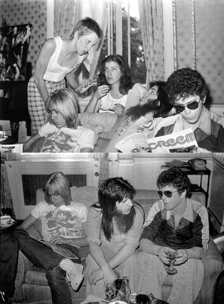 ↑ 역시 도체스터 호텔에서. 잡지 삼매경에 빠진 이기 팝, 숏컷에 민소매를 입은 여자는 당시 보위의 아내였던 앤지,