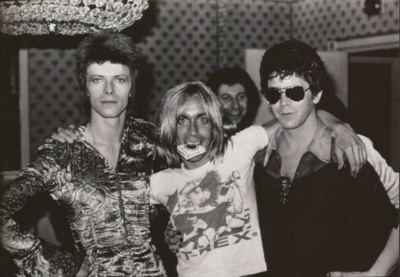 ↑ 1972년 런던 도체스터 호텔에서 열린 기자회견에서. 지기 스타더스트Ziggy Stardust가 된 보위, 이기 팝, 루 리드