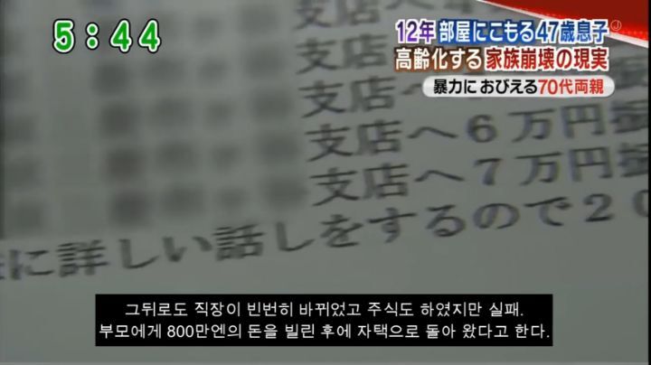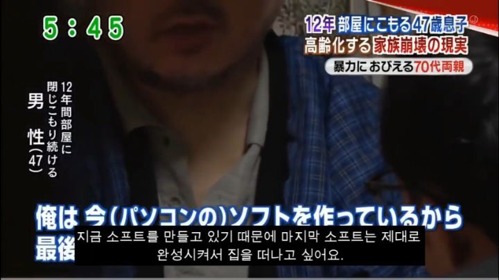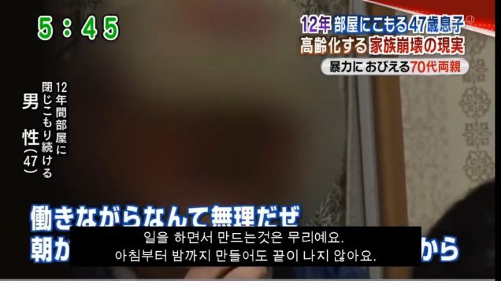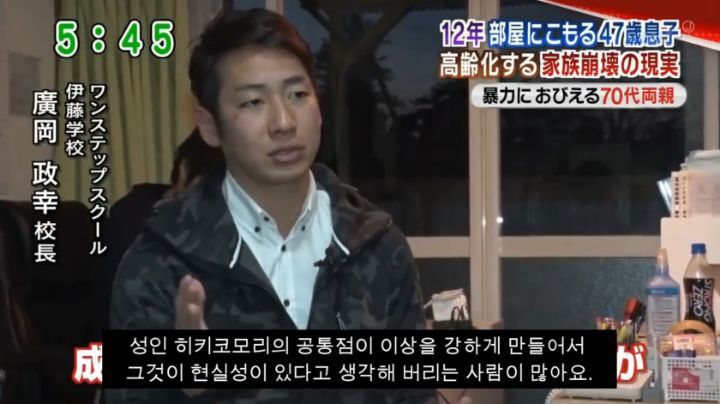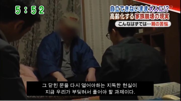 일본은 30년 전 있었던 10대 20대 히키코모리들이 50세가 넘어 이미 70만으로 산출됨. 늙은 부모가 장년이 된 히키코모리 자식을 살피는 5070 문제는 이미 심각..