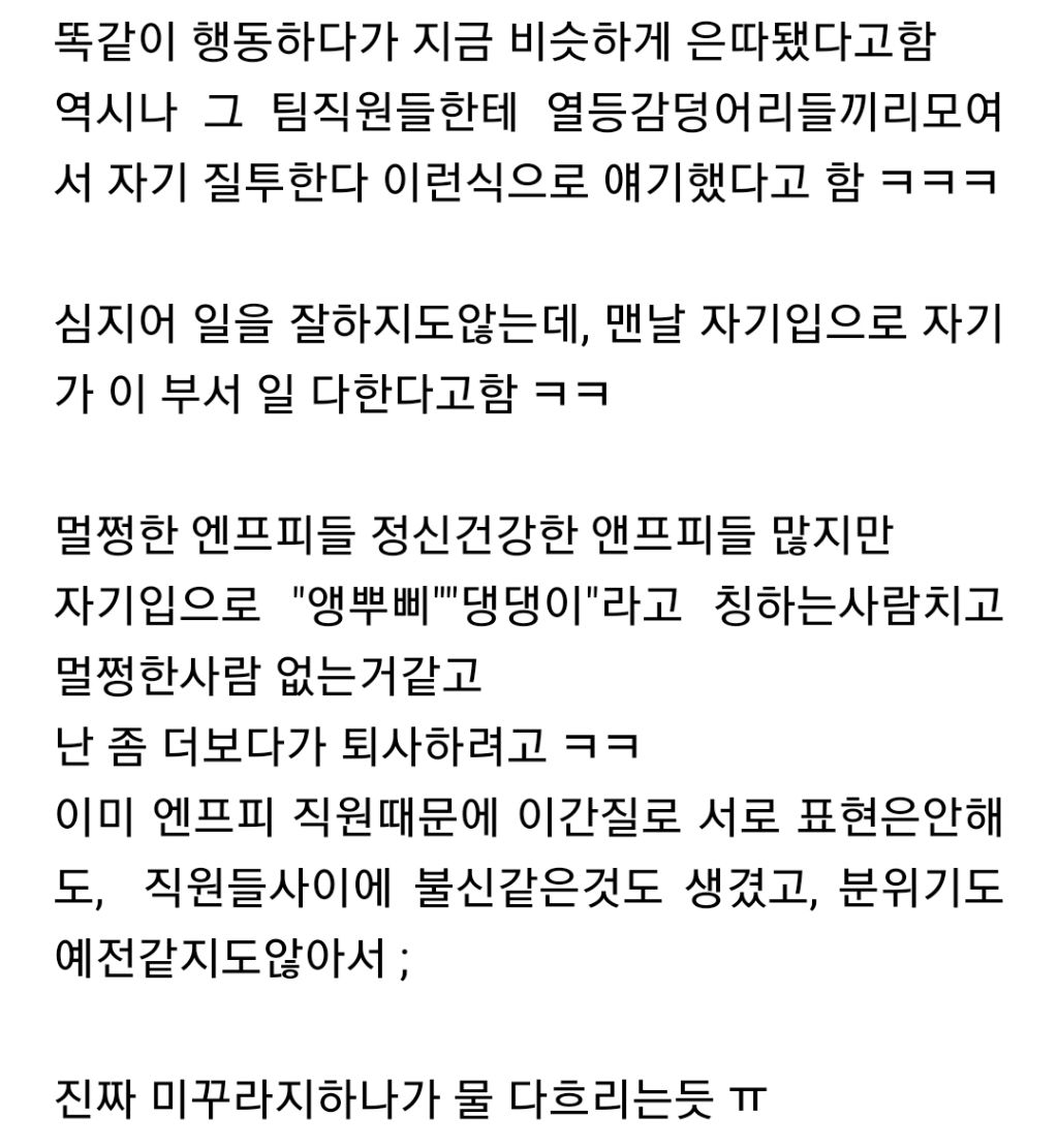 작성자주퍼샤이 작성시간 24.04.27 ㅎㅎ 모든 앤프피가 저러는건 아닌데