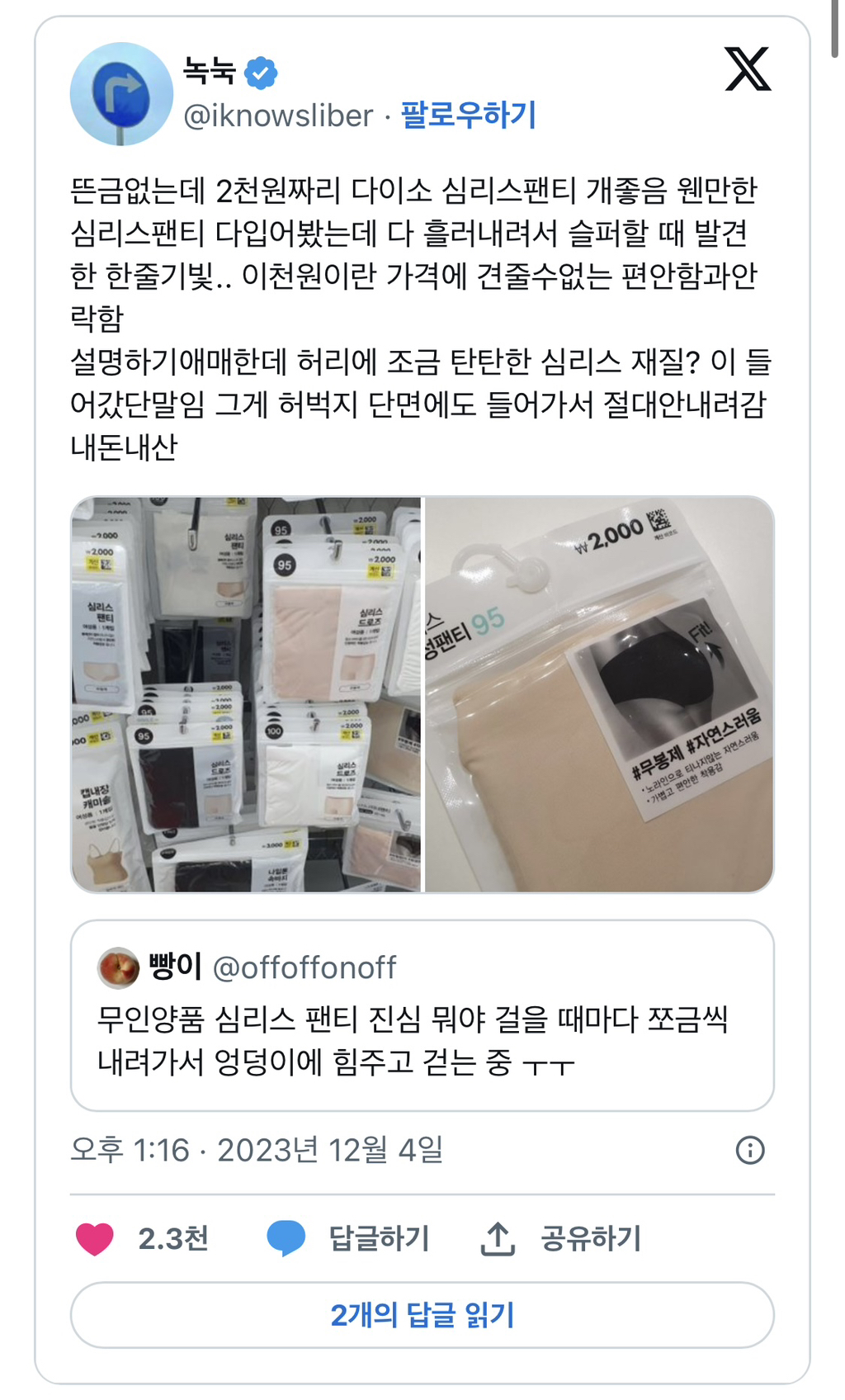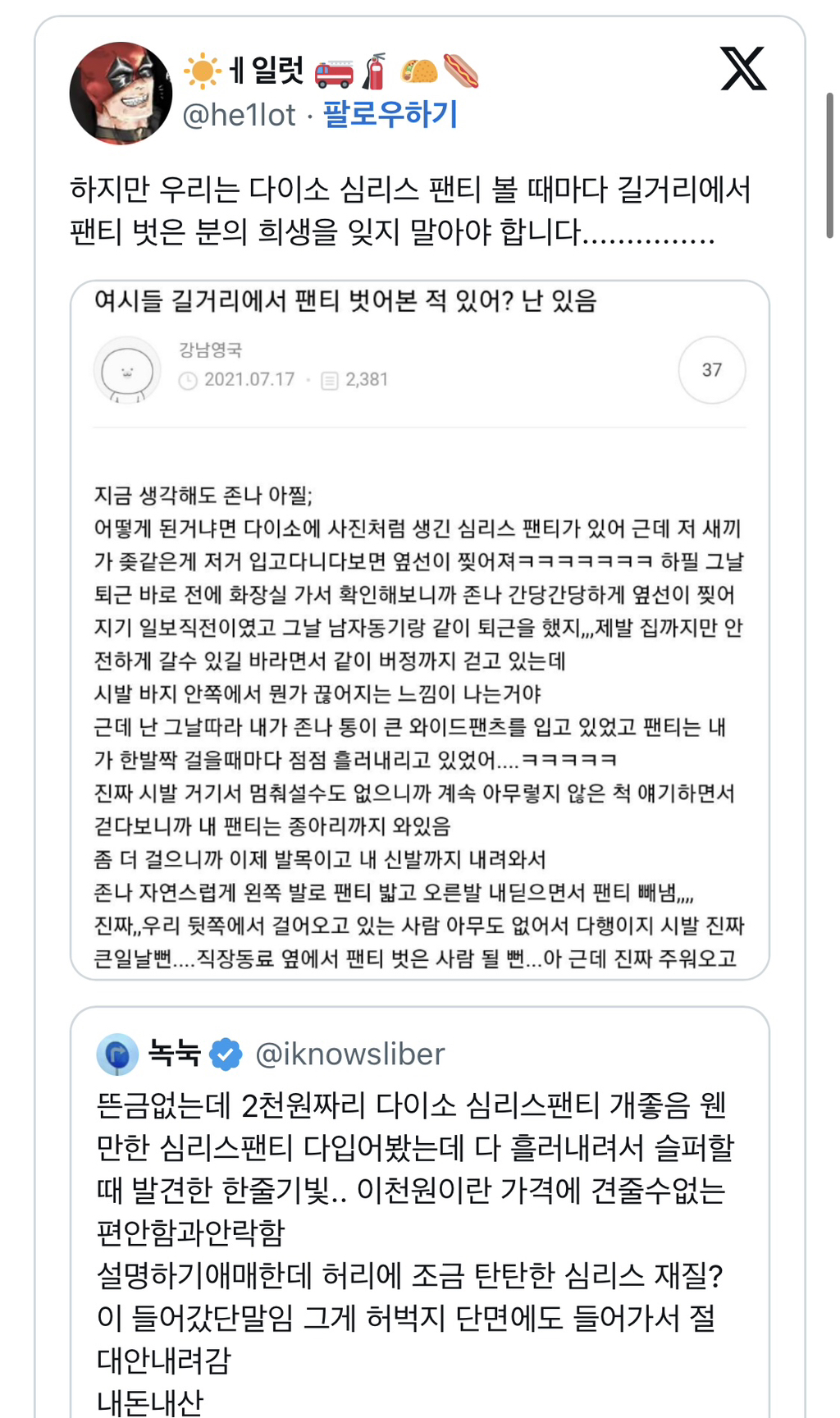[스크랩] [흥미돋]하지만 우리는 다이소 심리스 팬티 볼 때마다 길거리에서 팬티 벗은 분의 희생을 잊지 말아야 합니다...............