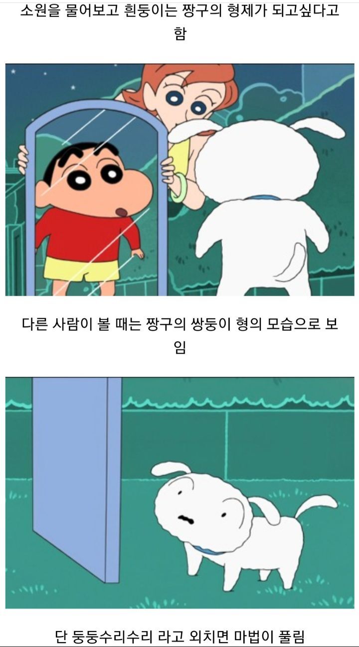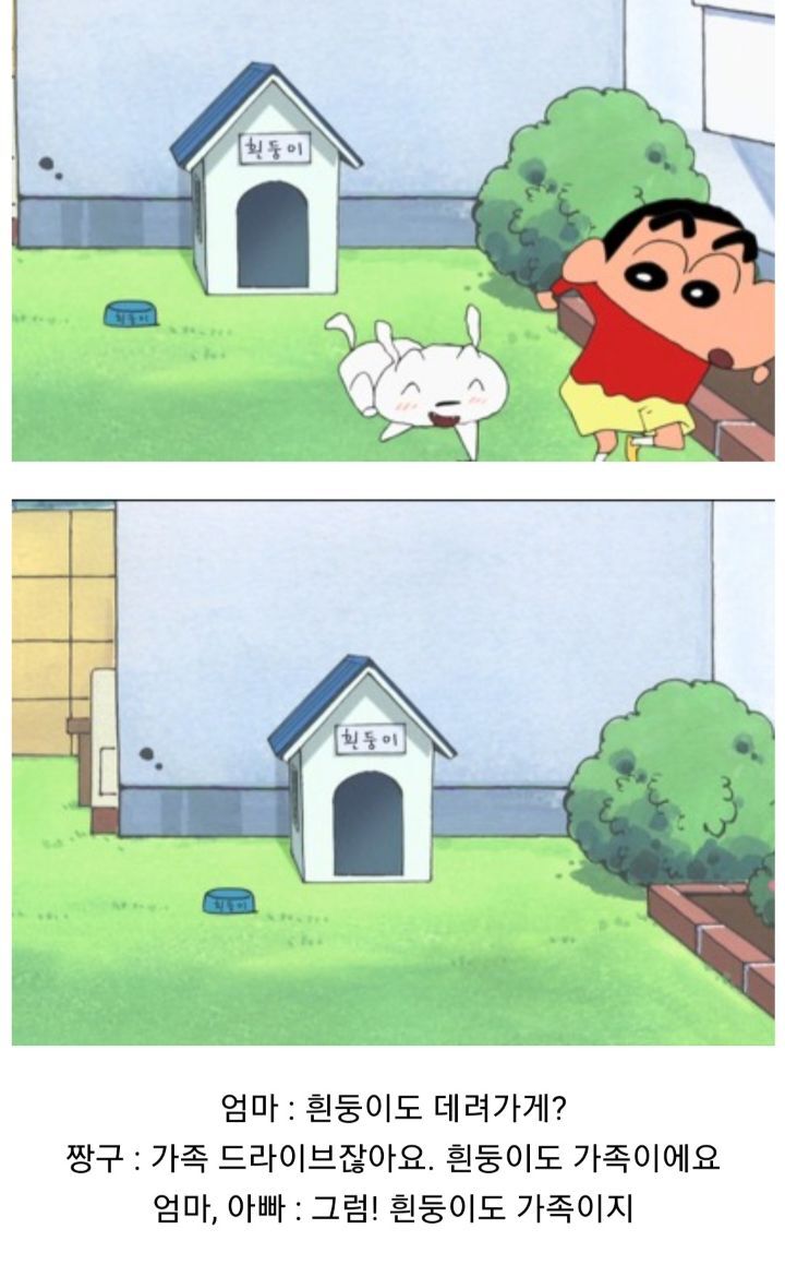 마지막은 결국 다시 강아지로 살아가게 되지만 그럼에도 짱구와 함께라서 행복한 흰둥이...