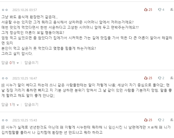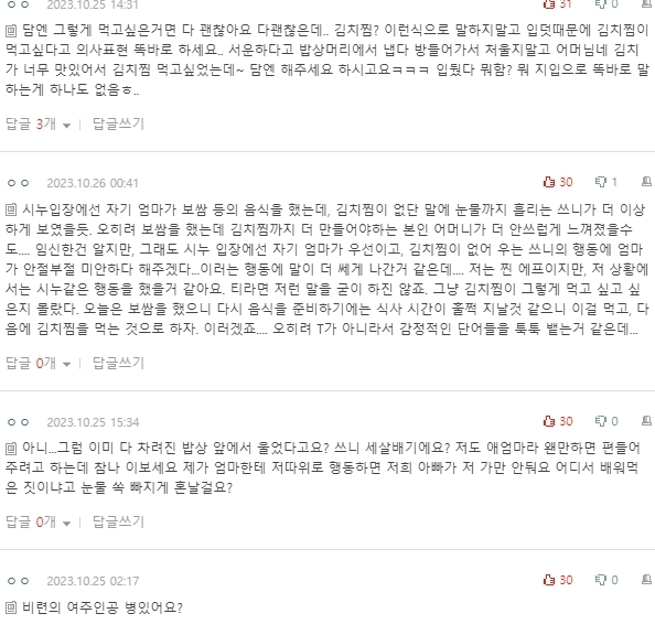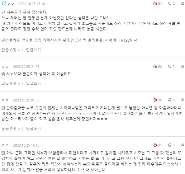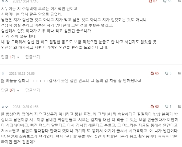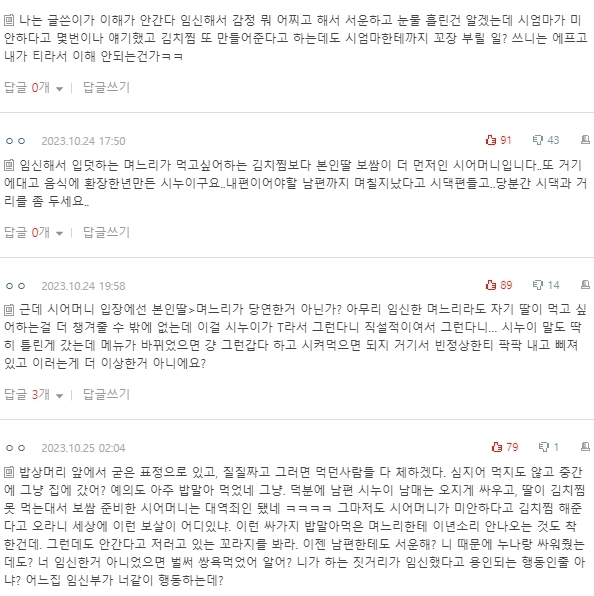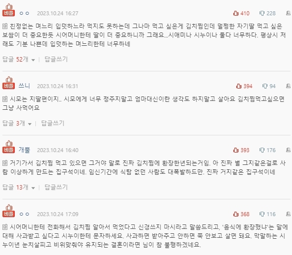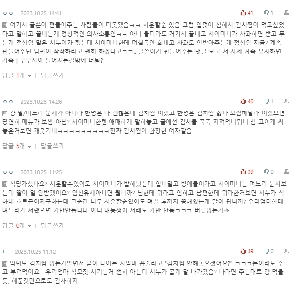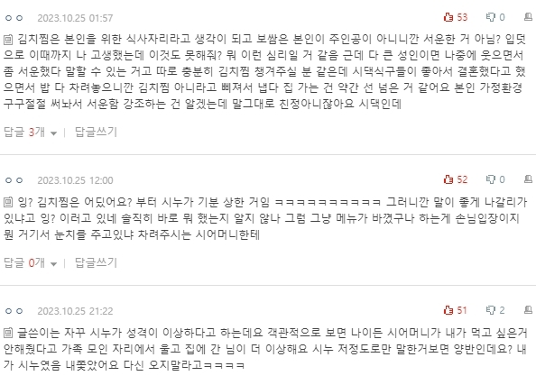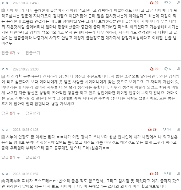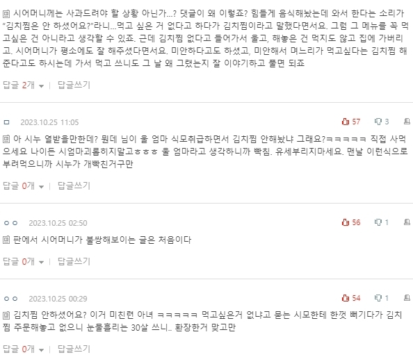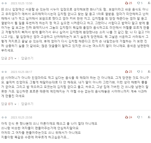 말했고 시누이는 김치찜이 싫다고 했으니 하셨을