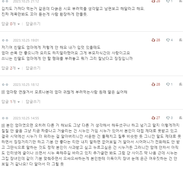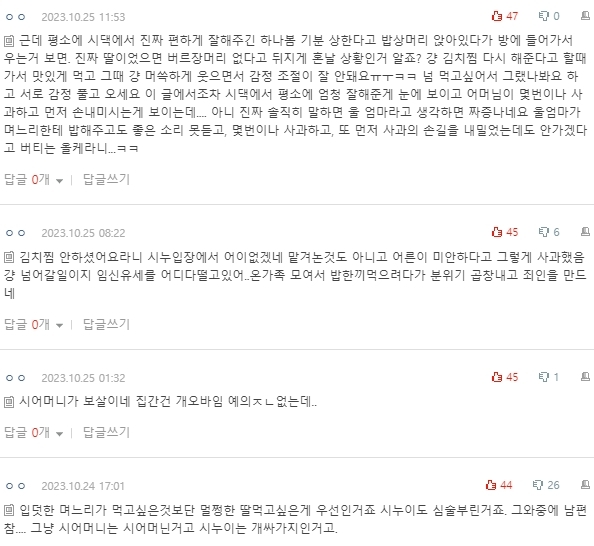 시어머니가 음식을 진짜 잘하세요 시댁 김치가