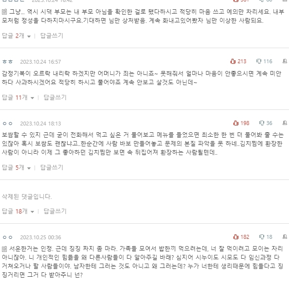 기분이 안풀리고 서운한데 남편이 엄마가