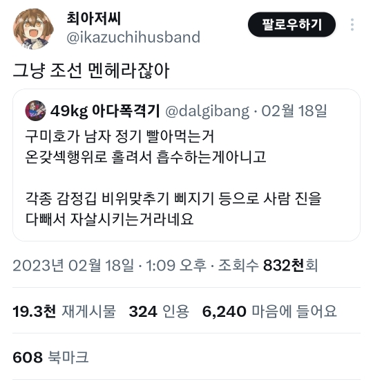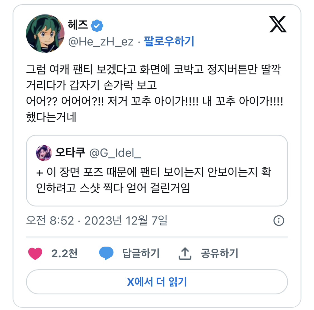 [배꼽의행방]웃긴거...모음... 작성자고나슴도치의 습격|작성시간24.01.28|조회수10,705 목록 댓글 34 글자크기 작게가 글자크기 크게가 출처 : 여성시대 (고나슴도치의 습격) 갤러리를 정리해서요.. 한번 올려봅니다.. 웃길수도..안웃길수도...이미 본 것 일수도.. *오하아사는 별자리 운세 ... 즐거웠기를 바라며.. 다음검색 현재 게시글 추가 기능 열기 북마크 공유하기 신고 센터로 신고 댓글 댓글 34 댓글쓰기 답글쓰기 댓글 리스트 작성자나의길을 간다 | 작성시간 24.01.29 ㅋㅋㅋㅋㅋㅋㅋㅋ 작성자내가만든 | 작성시간 24.01.30 글 지우는거 준비중ㅋㅋㅋㅋㅋㅋ 작성자Bass | 작성시간 24.01.30 지우지 말아줘 여시야 작성자항문철TV | 작성시간 24.01.30 아 너무잼나ㅜㅜ 작성자둔다당 | 작성시간 24.01.31 나진짜울어ㅋㅋㅋㅋㅋㅠㅠㅠㅠㅠㅠㅠ 진짜 졸라웃기다 ㅋㅋㅋㅋㅋㅋㅋ 댓글 전체보기