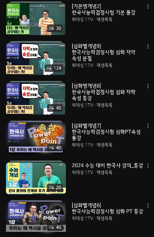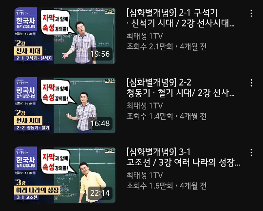 근데 한국사능력시험 영상 중에 특히 심화는 강의가 엄청 많아서 뭘 들어야하는지 모르겠더라구