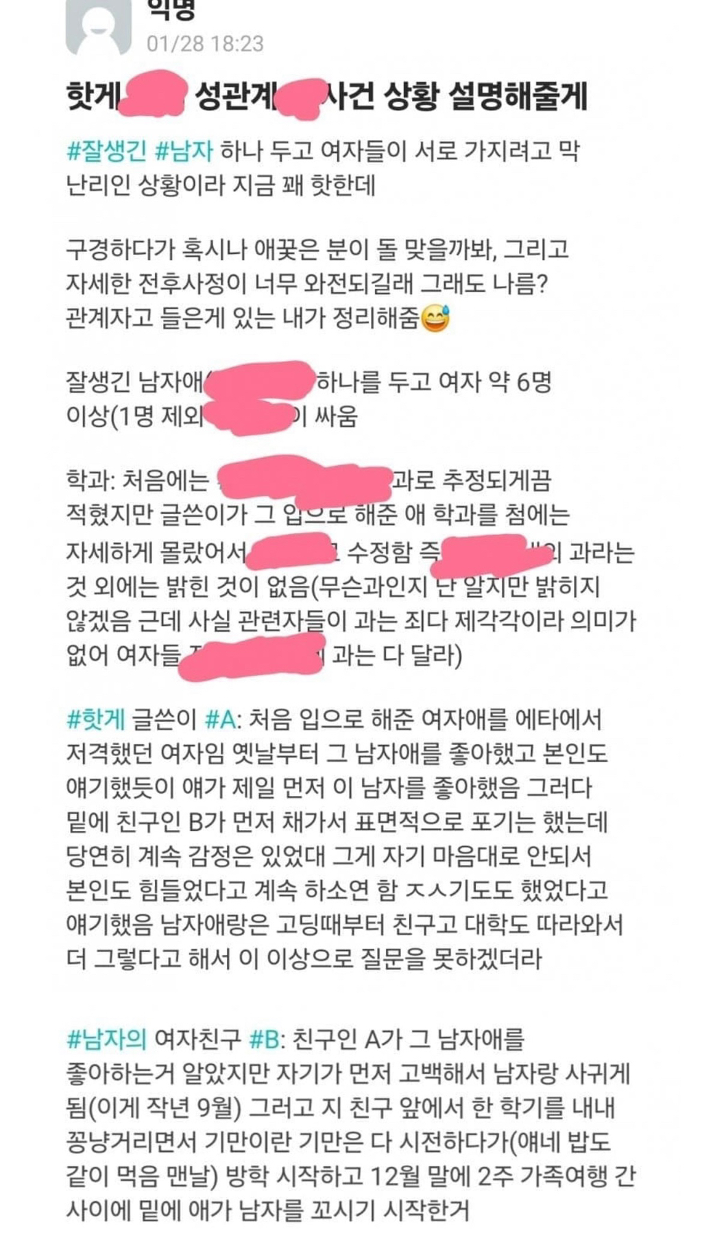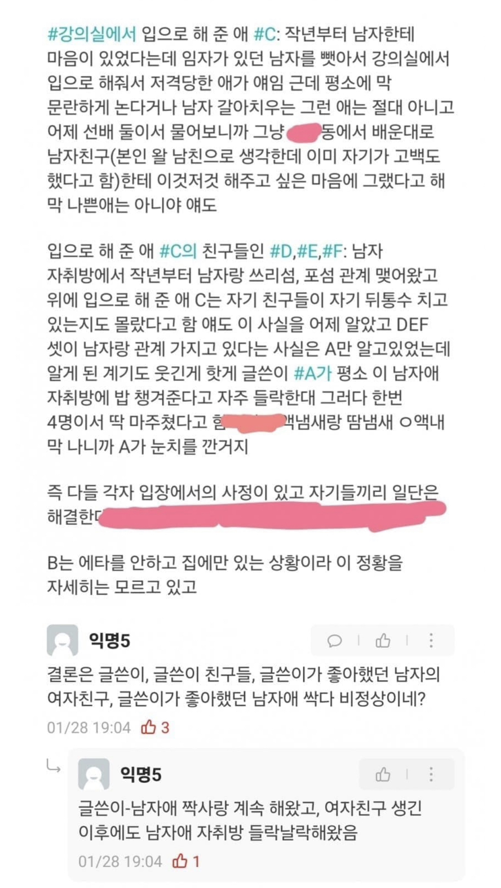 [기타]현재 에타에 난리난 고대 펠라남 대참사 (그 펠라 맞음) 작성자냥냐옹이|작성시간24.01.30|조회수47,647 목록 댓글 300 글자크기 작게가 글자크기 크게가 출처 : https://m.fmkorea.com/best/6663931697고려대 펠라사건..의 전말.m.fmkorea.com에타 원글 가독성이 안 좋아 맨 마지막 장에 요약 있음 다음검색 현재 게시글 추가 기능 열기 북마크 공유하기 신고 센터로 신고 댓글 댓글 300 댓글쓰기 답글쓰기 댓글 리스트 작성자d8o8b | 작성시간 24.01.31 주작임 고대에 잘생긴 남이 있을리 없음 작성자떡볶이보유국가 | 작성시간 24.01.31 작성자R=VD행복하다 | 작성시간 24.01.31 아시발 개토;; 작성자아메리카노말고핫초코 | 작성시간 24.01.31 남자 신상 까라 얼굴좀보자 작성자고슴도치애.슯격 | 작성시간 24.02.05 포썸을 어케해요???? 댓글 전체보기