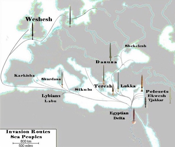 당시 찬란했던 히타이트와 미케네, 카르케미쉬등 지중해 문명을 모조리 박살내버리고 문명이 수백년 후퇴하여 암흑시대를 도래하게함과 동시에 갑작스럽게 사라진 '바다 민족(Sea People)'은 과연 누구였을까요?
