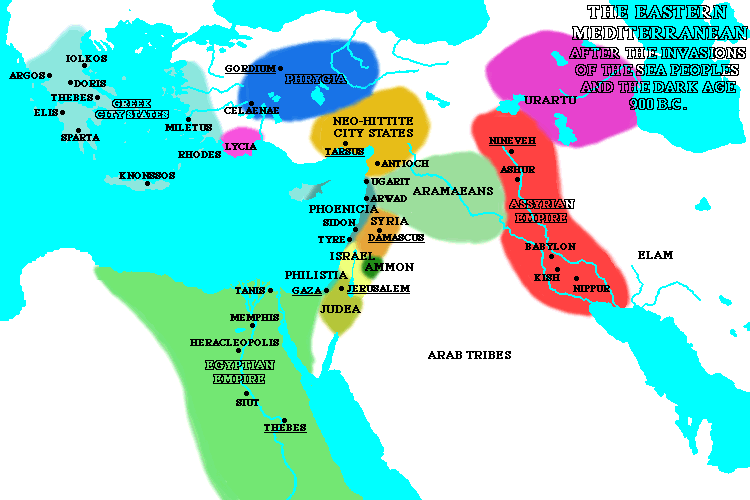 사람들은 바다 민족의 공세에 '수백년이나 퇴화된 문명'속에서 값비싼 청동대신, 값싼 철기를 구입하면서 철기문명으로 도입하게 되는 계기가 되었습니다.