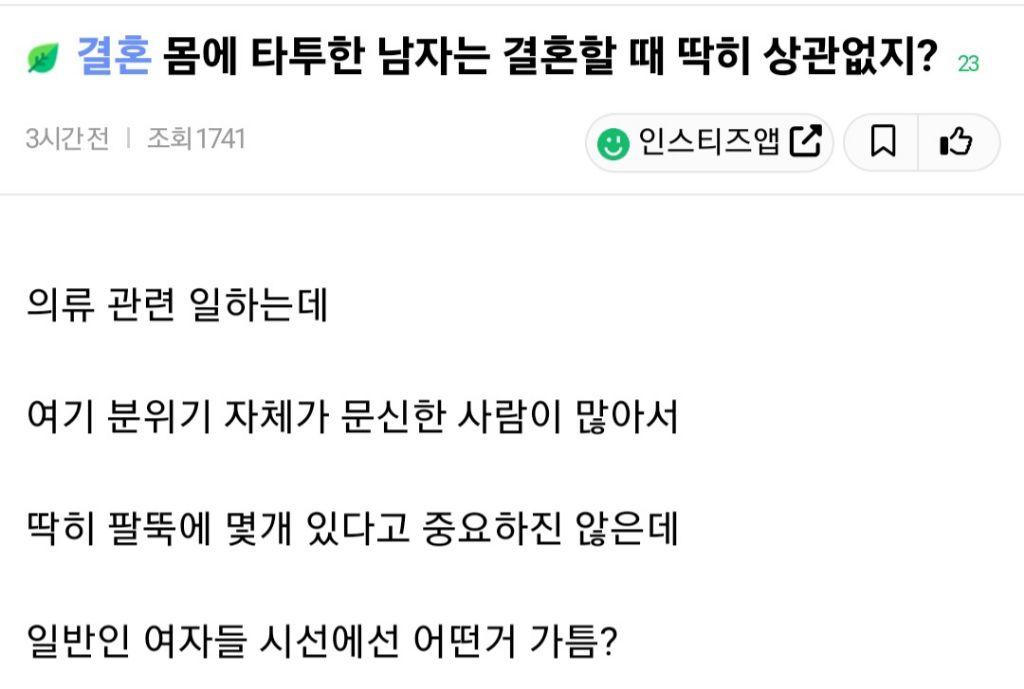 난 남자가 문신있음 걍 창롬같아서 싫늠