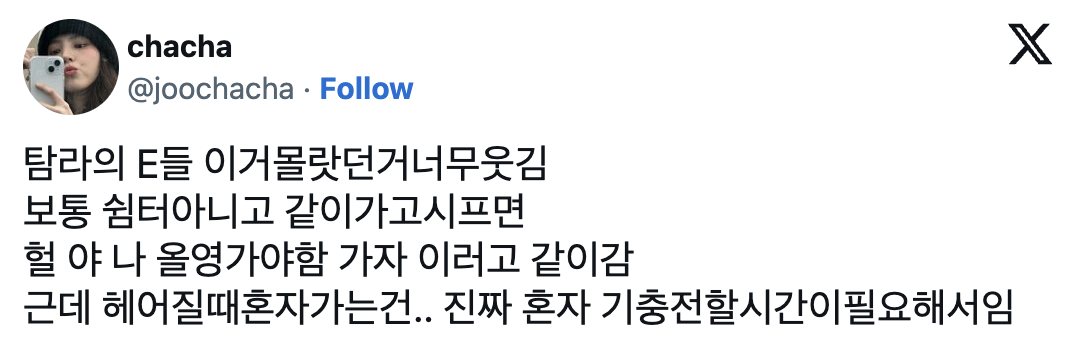 아 근데 생각해보니 친구들 대부분 E라 같이 구경간거 괜찮겠지... 나도 올영 가야할때 친구들도 다 같이 갔었는데 개충격 ㅋㅋㅋ -