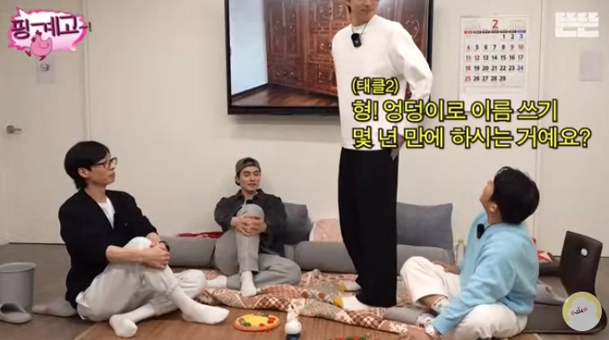 벌칙으로 엉덩이로 이름쓰기 하기로 함