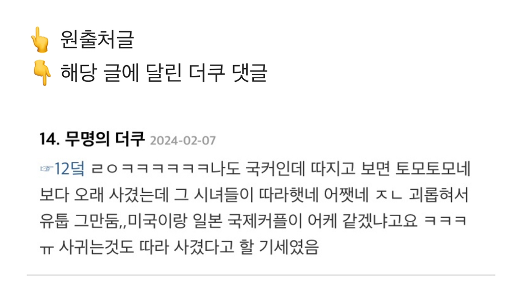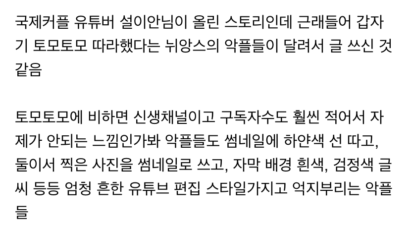 [기타]유튜버 설이안 토모토모 관련 악플 인스스(작년글) 작성자갓생 살아볼려고|작성시간24.02.09|조회수22,908 목록 댓글 17 글자크기 작게가 글자크기 크게가 출처 : 디미토리https://www.dmitory.com/issue/274603746더쿠 https://theqoo.net/square/3097658603 다음검색 현재 게시글 추가 기능 열기 북마크 공유하기 신고 센터로 신고 댓글 댓글 17 댓글쓰기 답글쓰기 댓글 리스트 작성자I wish I was special | 작성시간 24.02.09 여기 채널은 매~~~번 다른 채널 머리채잡는 소식으로 알게됨ㅋㅋㅋㅋ 작성자그래도사랑하시죠..? | 작성시간 24.02.09 뇌가 다르게 태어났나 시녀짓을 왜해 작성자가방퍼즐 | 작성시간 24.02.09 토모에리들 아주 하는짓거리들마다 유인씨 욕먹이는 짓 오짐 삭제된 댓글입니다. 답댓글 작성자모든것은 내 소원대로 된다 | 작성시간 24.02.12 2 에리들때메 진즉에 구취함ㅠ 외젏애 진짜 댓글 전체보기