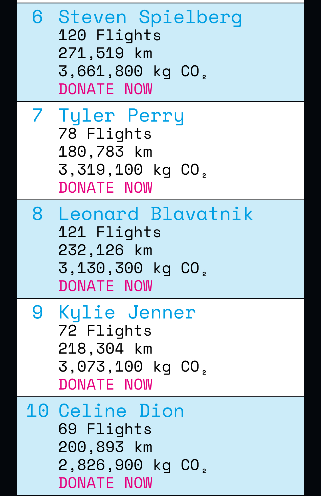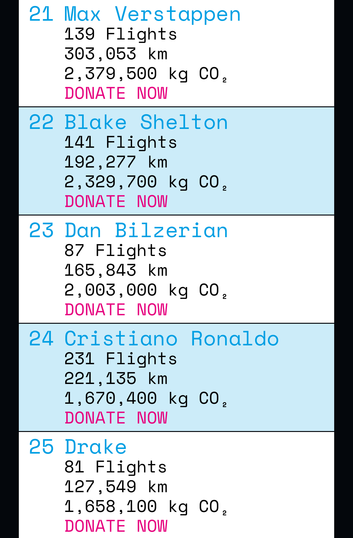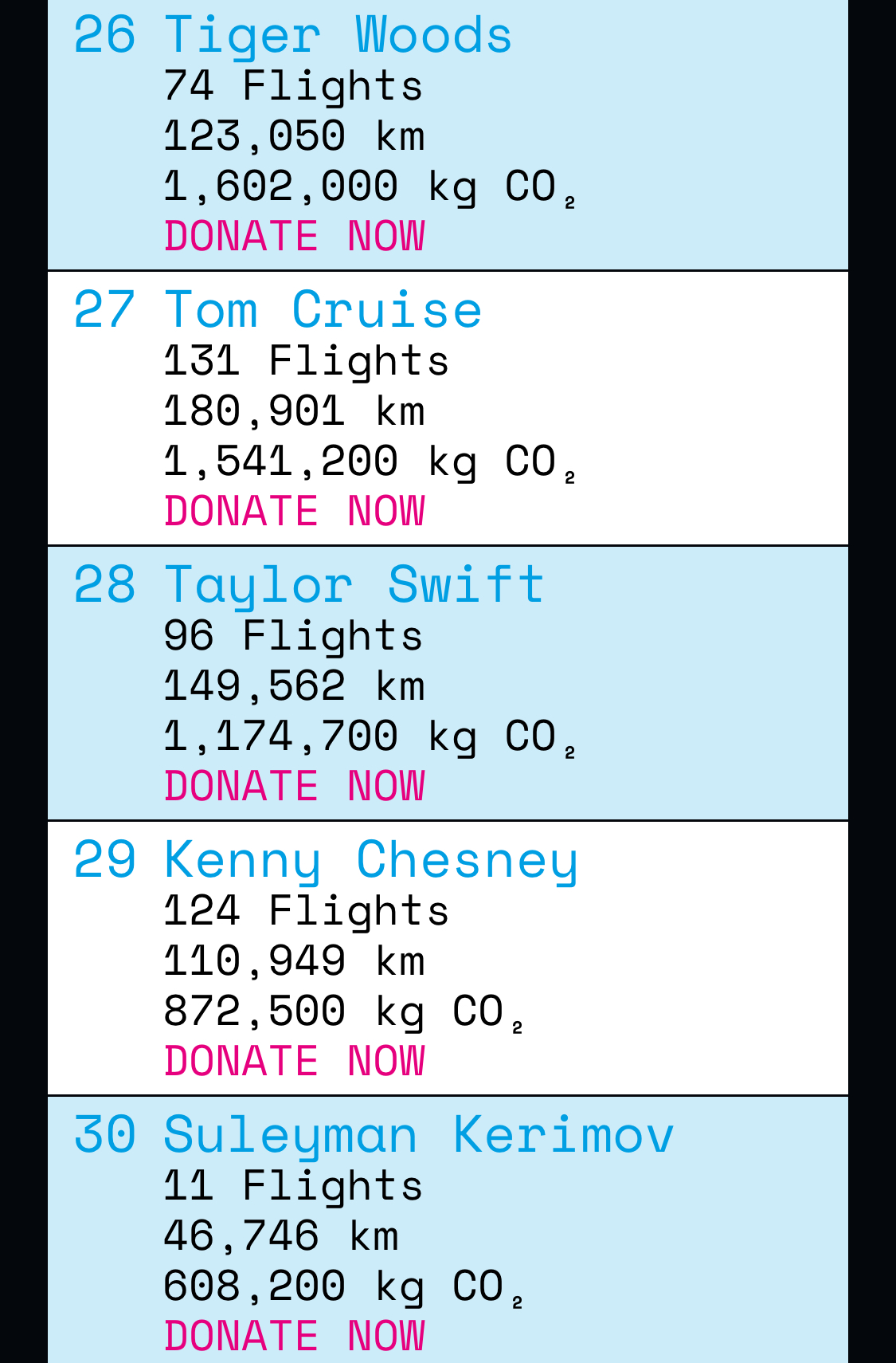 Here are the top 30 celebrities that took the most flights in private jets in 2023: