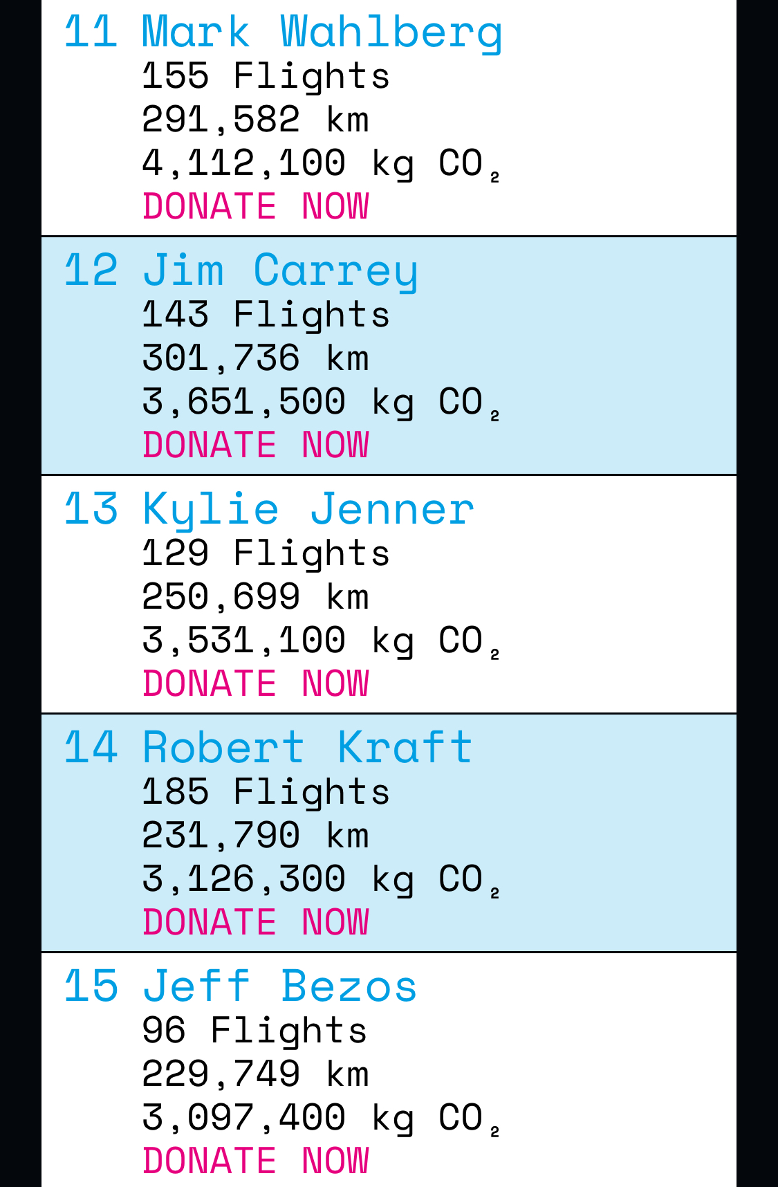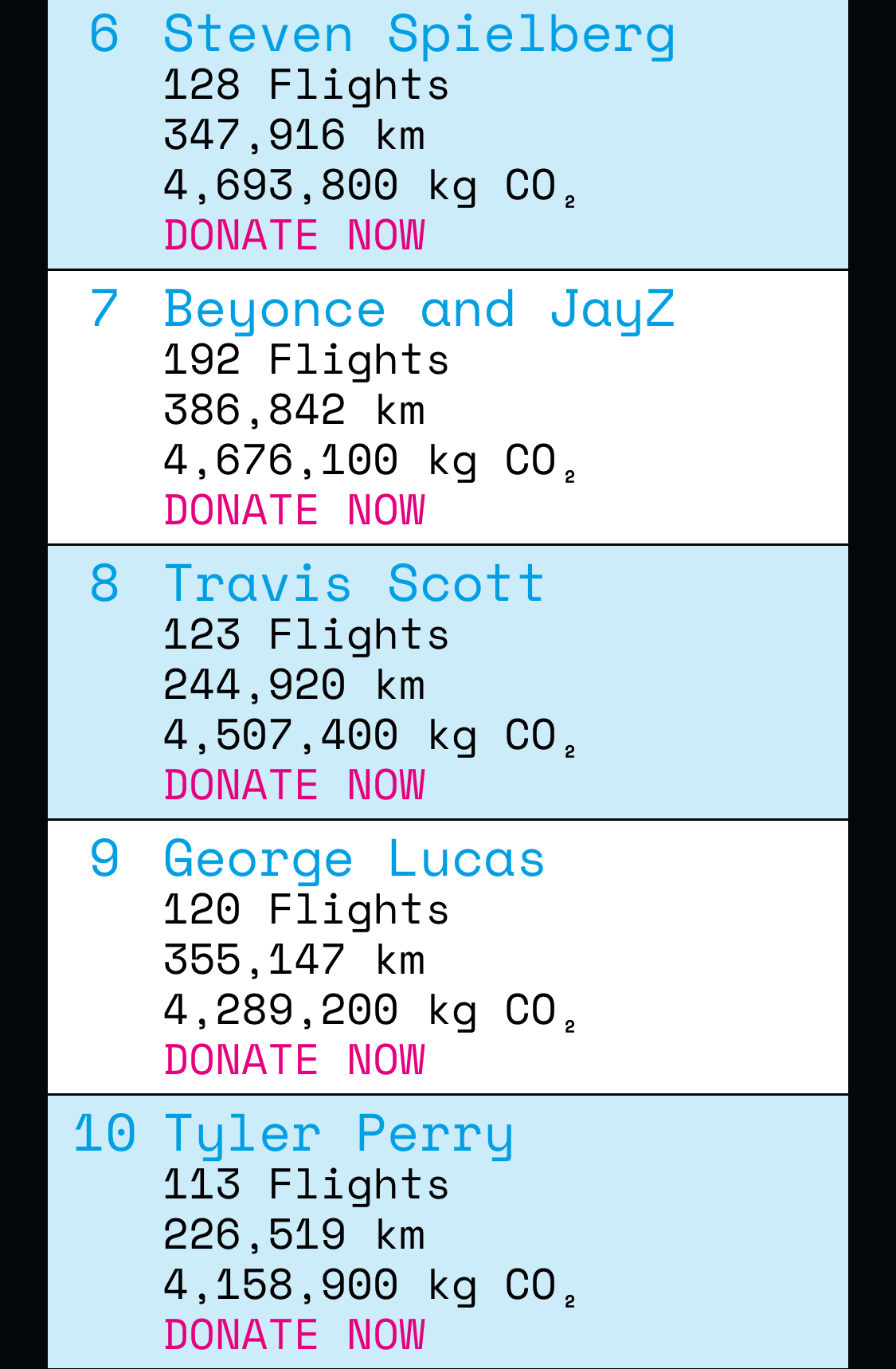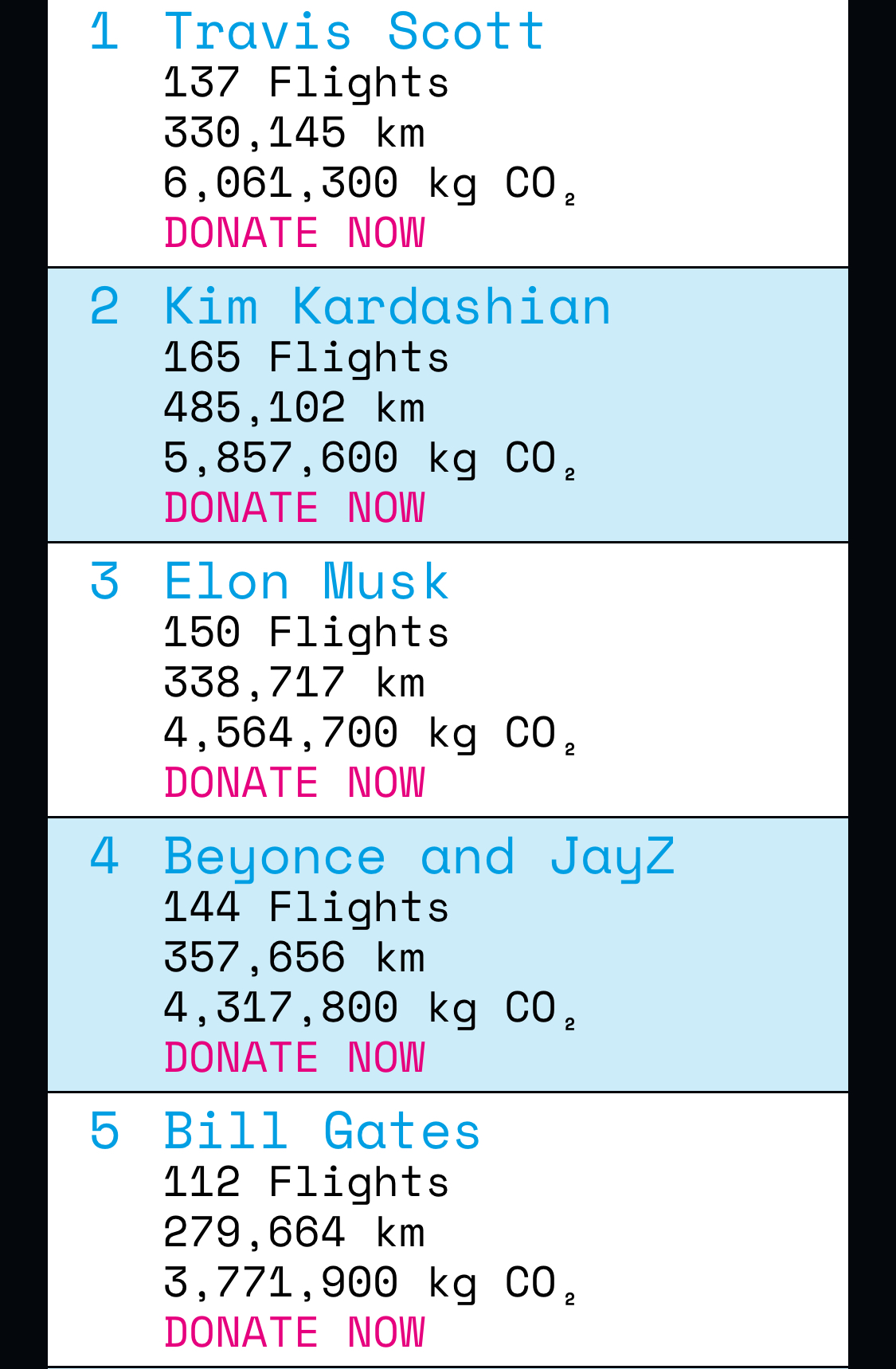 Here are the top 30 celebrities that took the most flights in private jets in 2023: