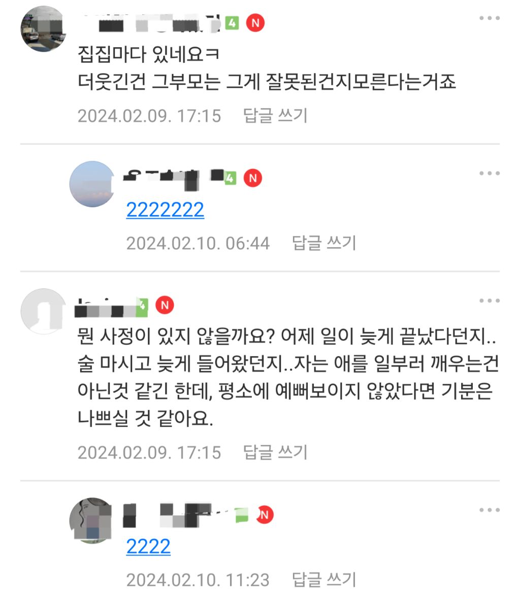 작성자리콜라허브 작성시간 24.02.12 인사 굳이 왜..? 그리고 가족은 진짜 가족바이가족인데 저거보고 예의 교육 운운하는게 이상한데