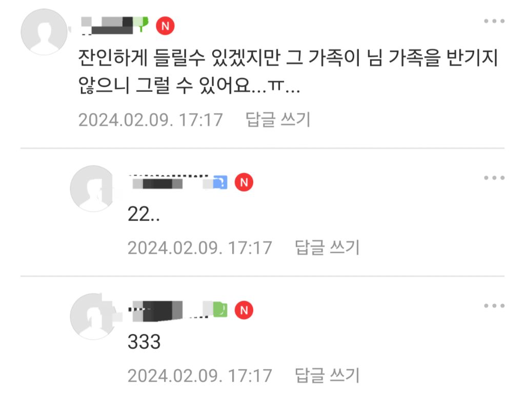 작성자사과매운탕 작성시간 24.02.12 인사도 못받을만큼 친분도 없고 그럴필요도 없는 친척인가보지 ㅋㅋ 어쩌라고임