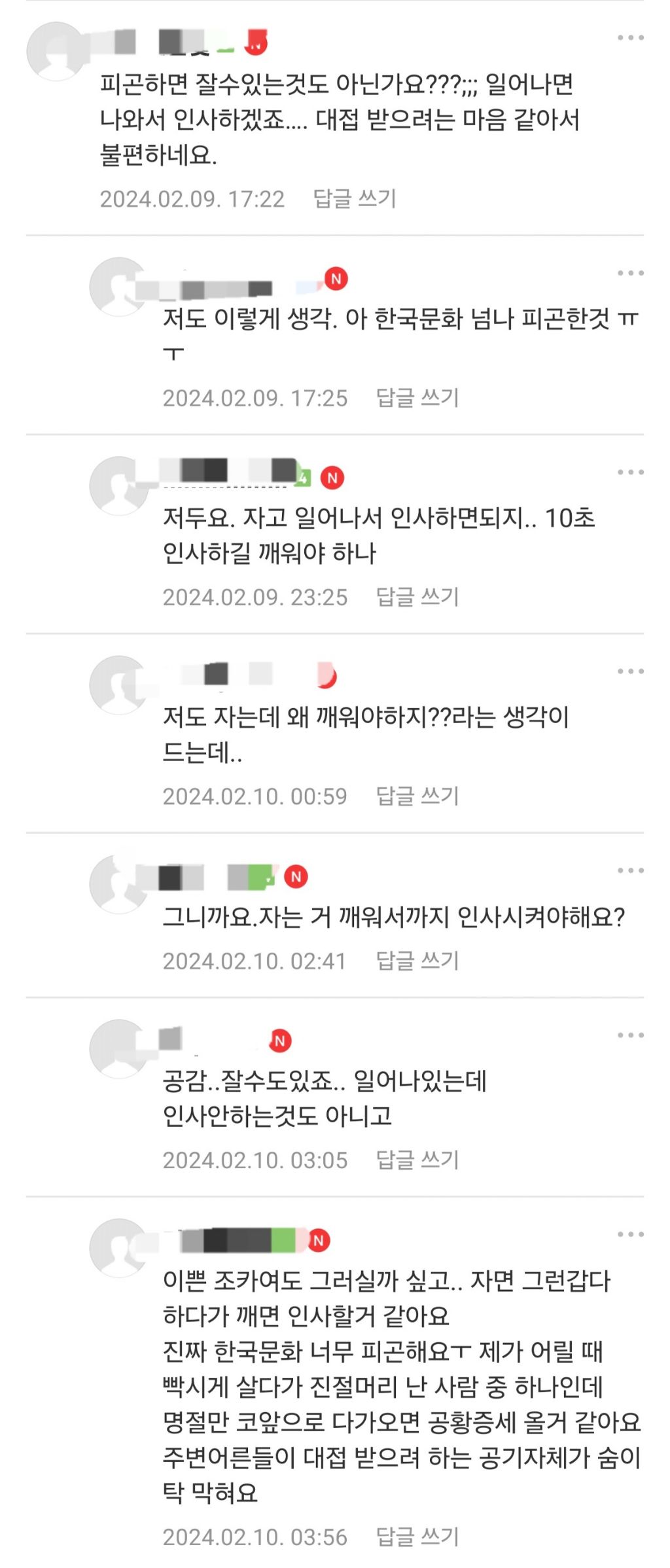 저런거 없는집안이 자유롭고 편한거같아 인사하라고깨우는식의 그런것들때문에 명절이 싫은거같음 -