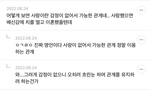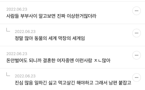 작성자행복하고싶오 작성시간 24.02.12 진짜 이런거보면 결혼이 뭔가 싶다