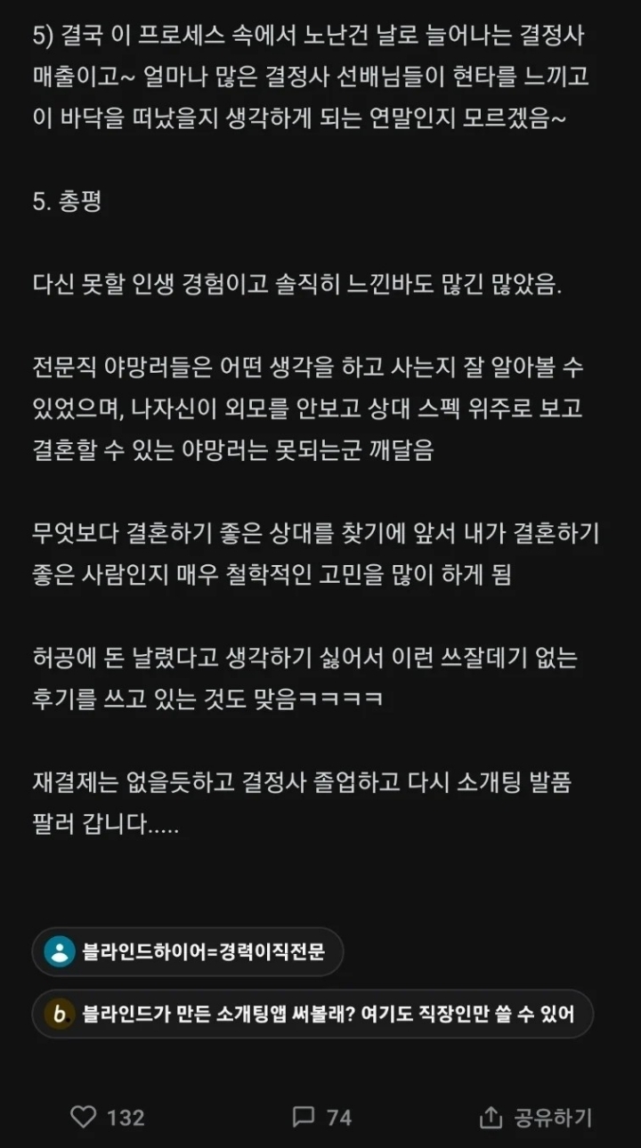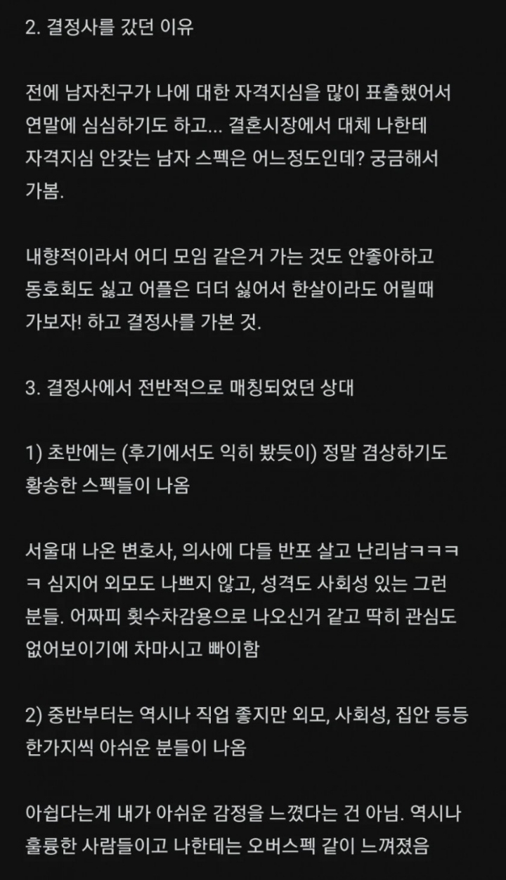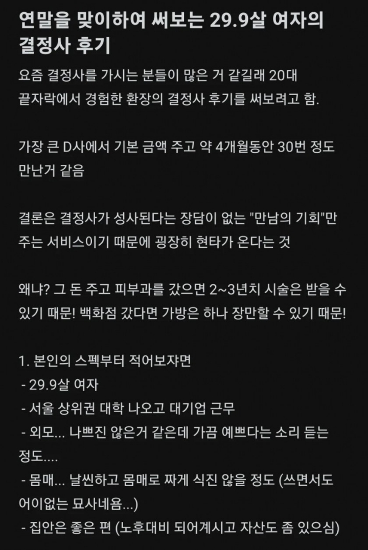 뭐 결정사해서 상향혼 했다 이건 외모가 출중하고 집안 빵빵 해야함..ㅋㅋ -