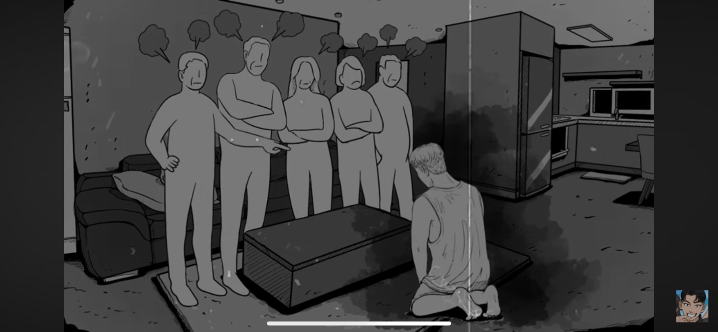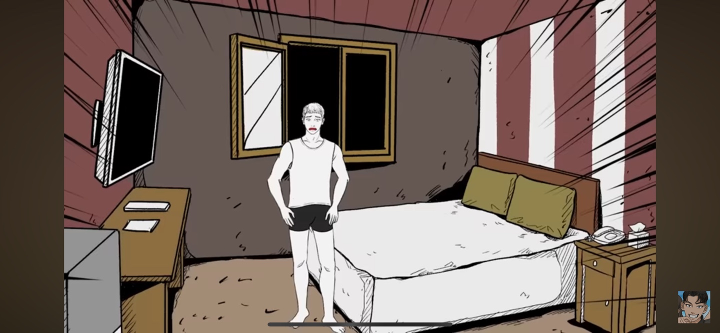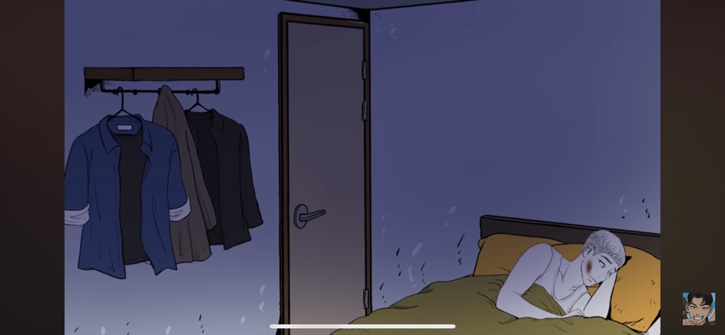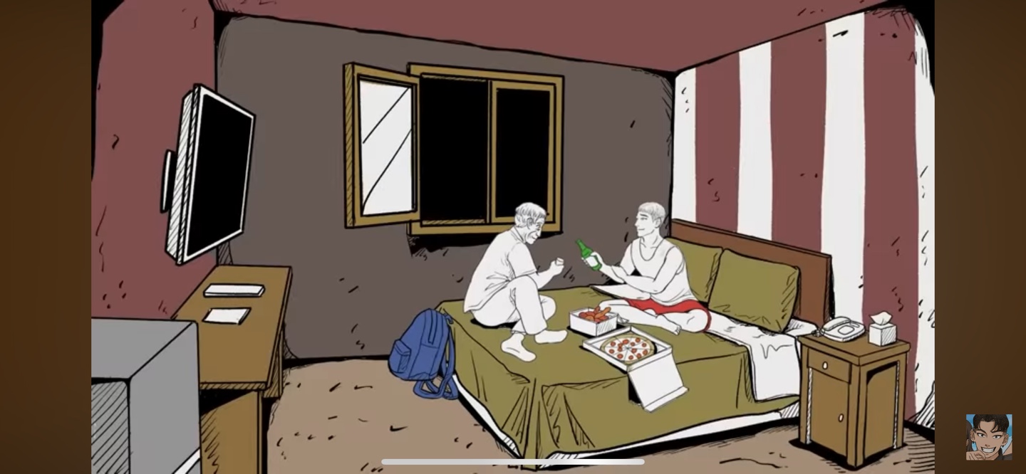 감사의 의미로 주인공이 본인 방으로 아저씨를 초대해서 술 대접함