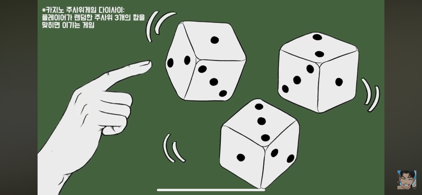 주사위 3개 숫자 맞추면 니가 배팅한 금액 몇 배로 돈 줌