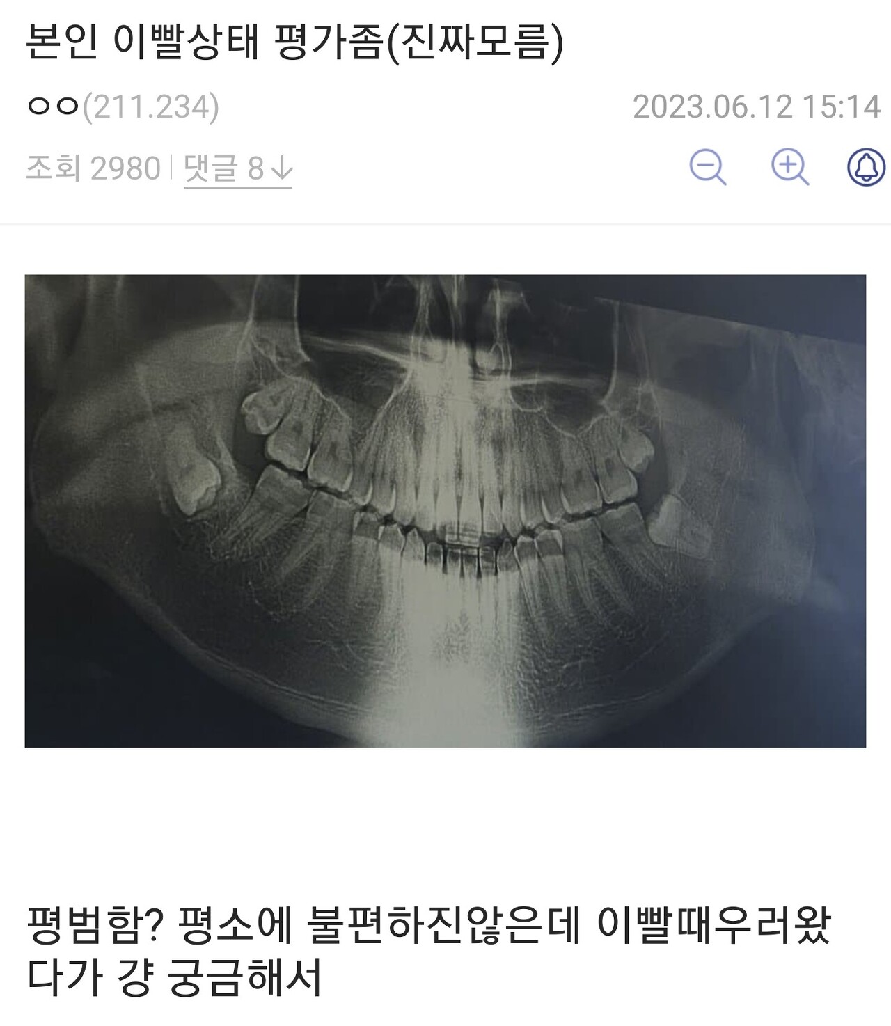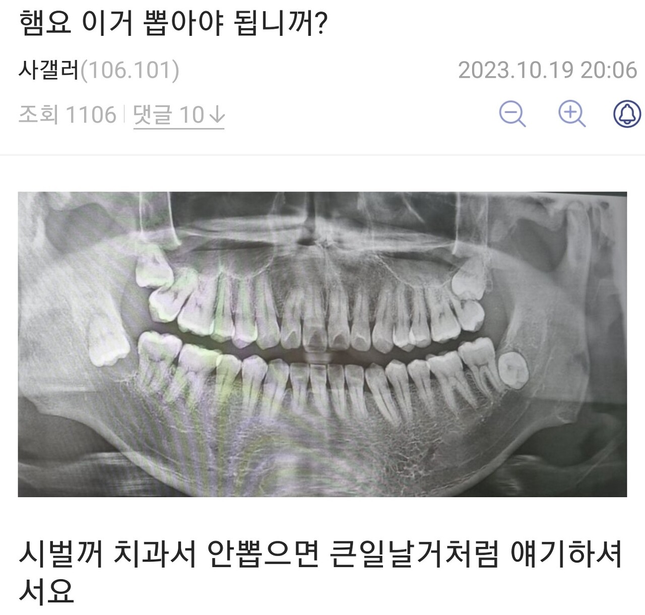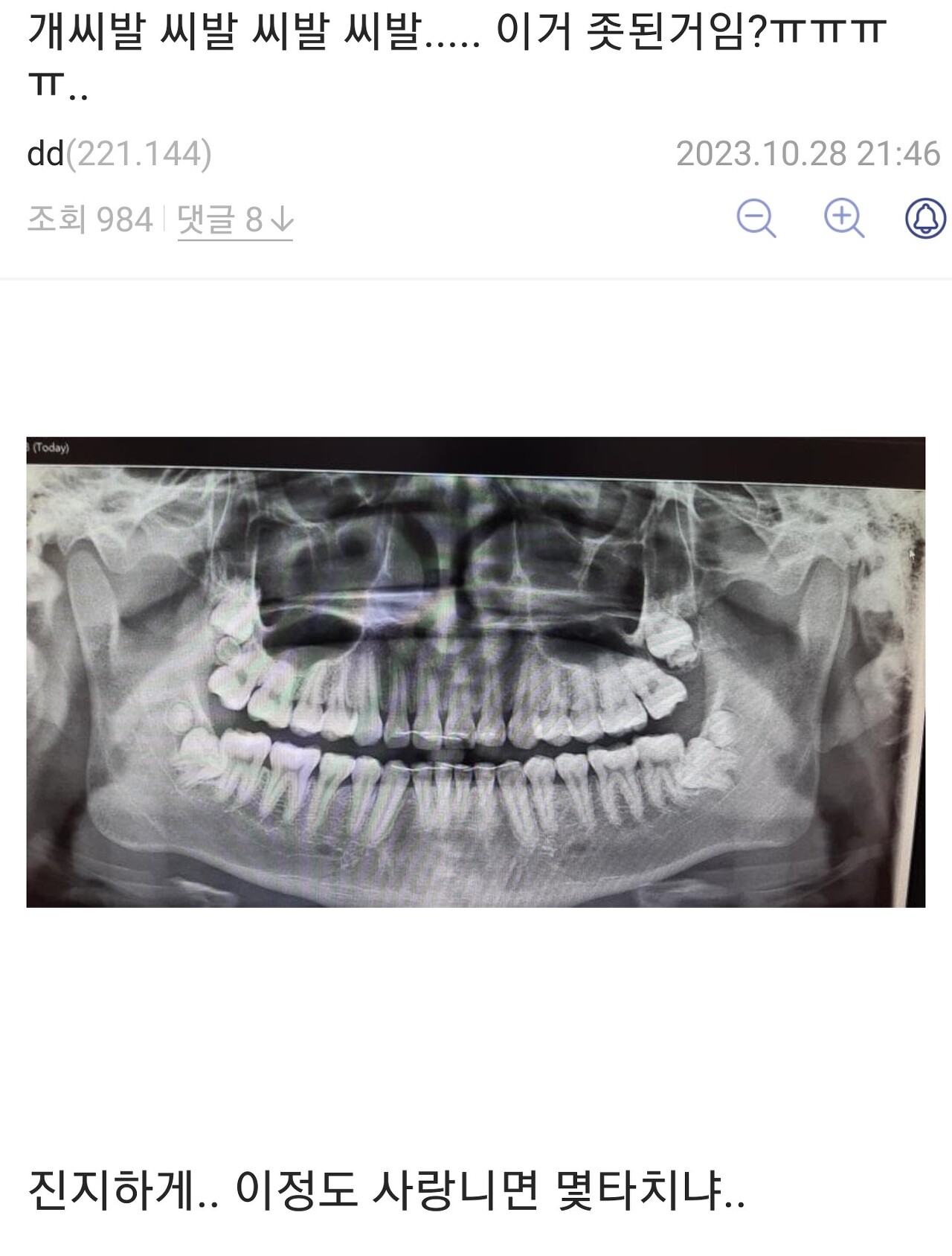 • 작성자설탕안먹어 | 작성시간 24.02.14 밑에서 두번째 사랑니랑 눈 마주침;;