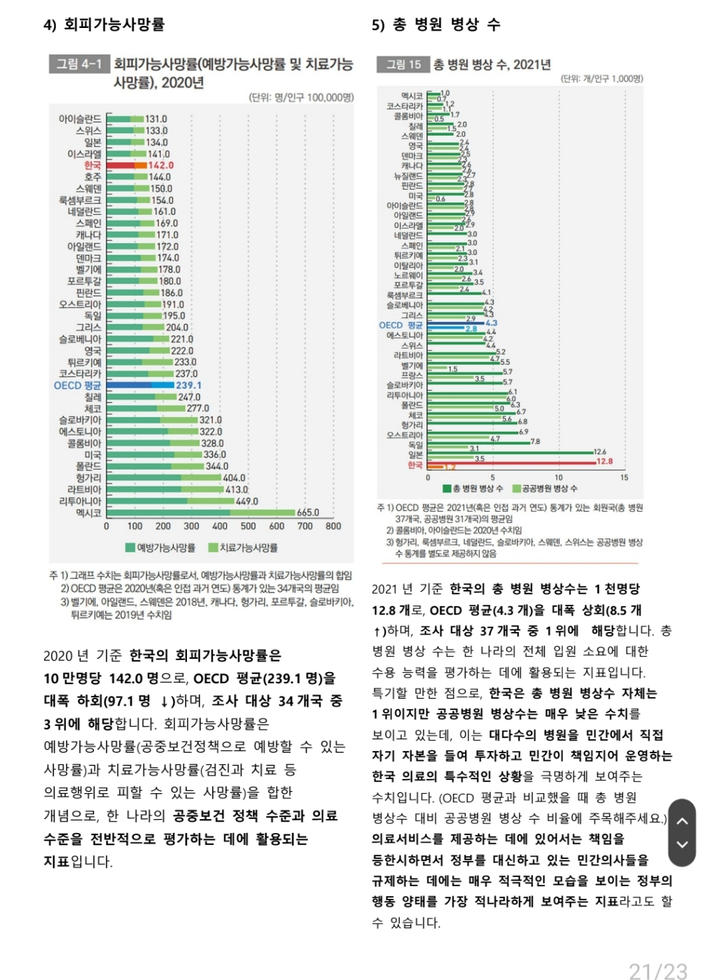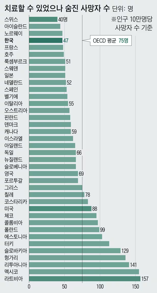 치료가능사망률, 예방가능사망률 모두 oecd 최상위권.