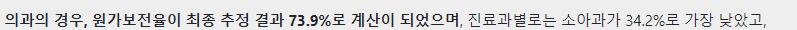 원가보전율 70%임. 진료보면 30% 적자. 소아과는 적자가 66%임.