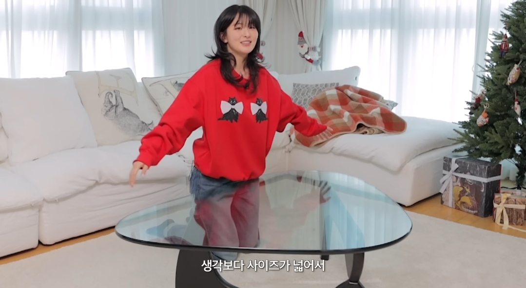 사이즈가 괜찮아서 여기서 밥도 먹고 커피마시고 티비보고 다 한다고 대만족