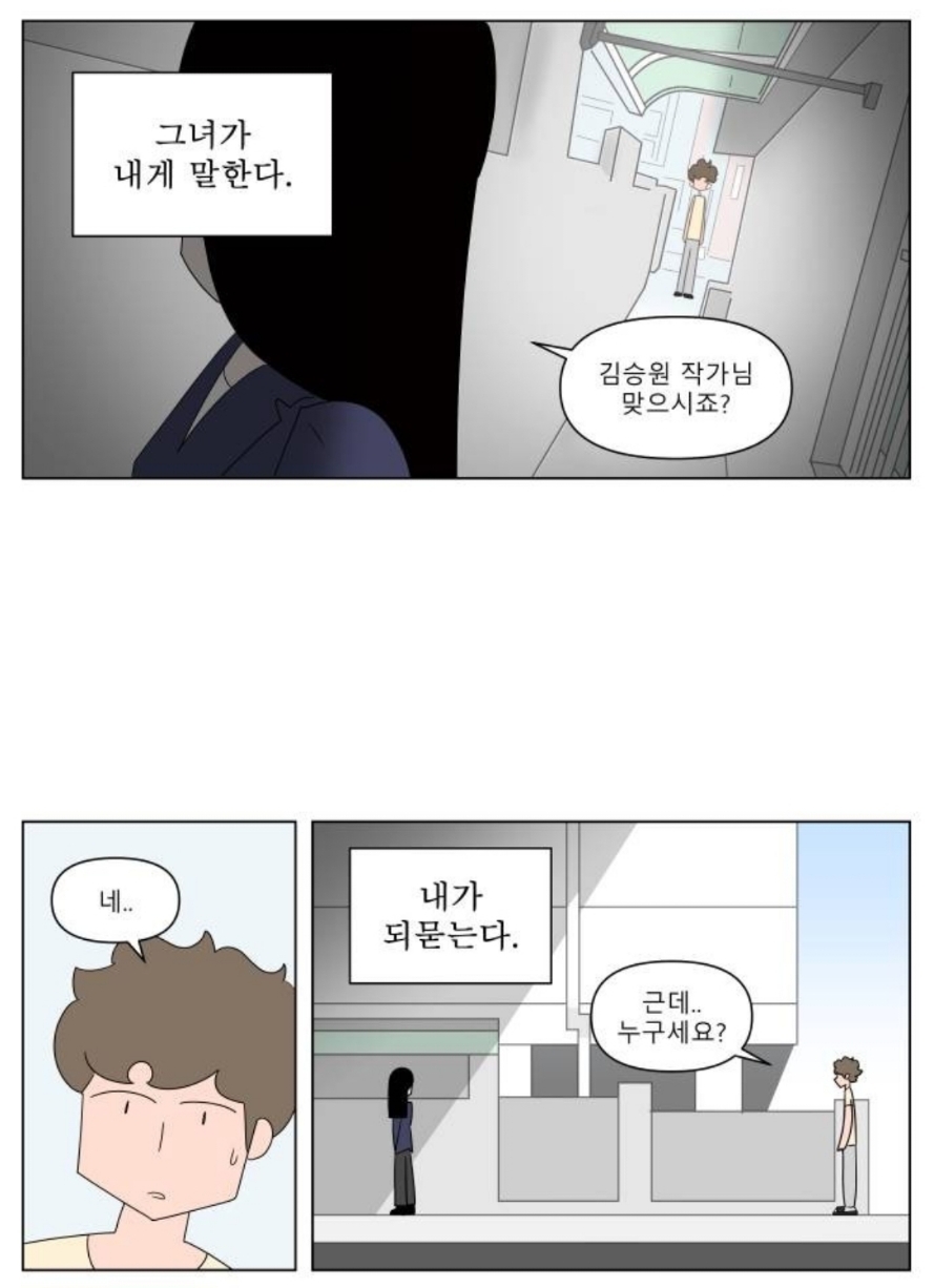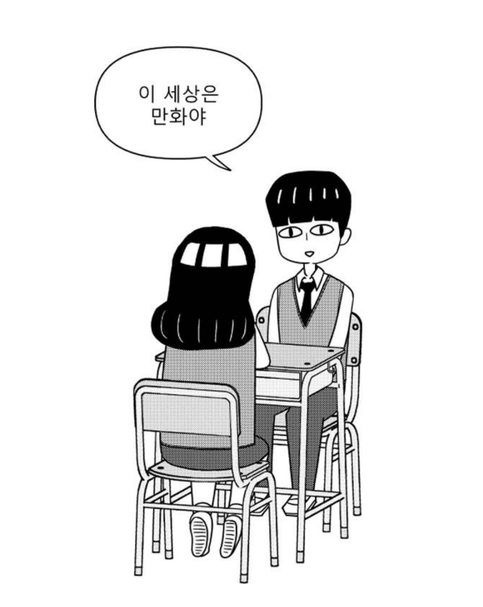 예. 그렇습니다. 바로 다음 화에 등장한 이 남자는 갑자기 또 이 세상은 만화가 아니라고 주장하는데요. 그러고 나서 곧,